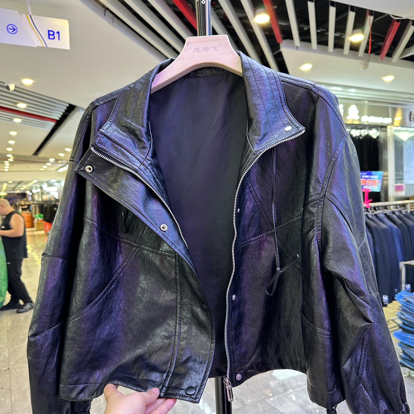 时尚妈妈2025秋冬新款翻领长袖PU皮衣外套女中老年宽松显瘦皮夹克