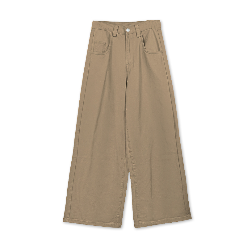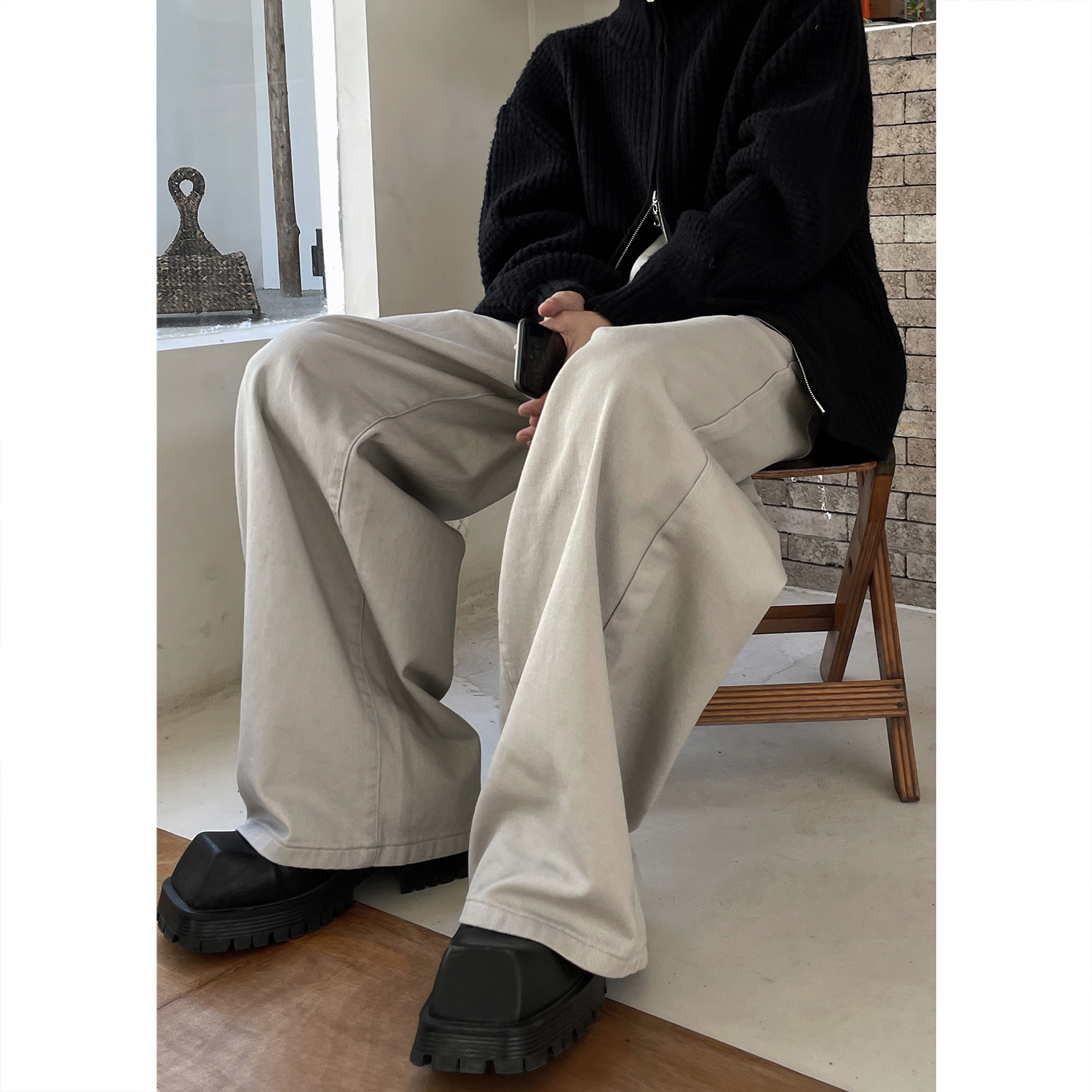 ZINGUP美式高街拖地长裤男春秋卡其色裤子宽松直筒休闲阔腿牛仔裤