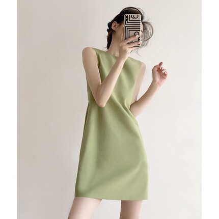 绿色法式无袖吊带裙女夏季港味复古chic气质短款打底背心连衣裙