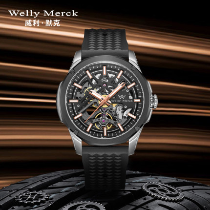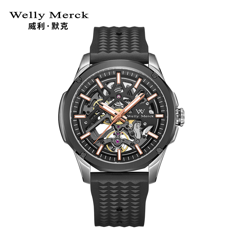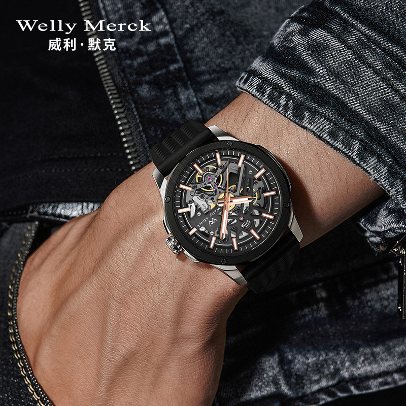 威利默克WM手表男士学生潮流男款镂空腕表品牌正品黑迷宫机械男表