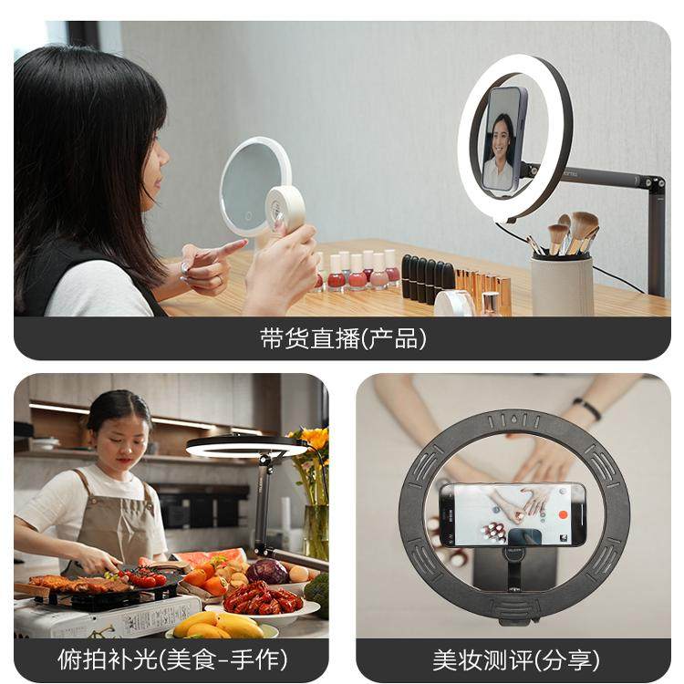 TELESIN泰迅直播手机支架磁吸便携可折叠追剧懒人支撑架iPad平板通用桌面主播拍摄落地专业带散热器补光灯