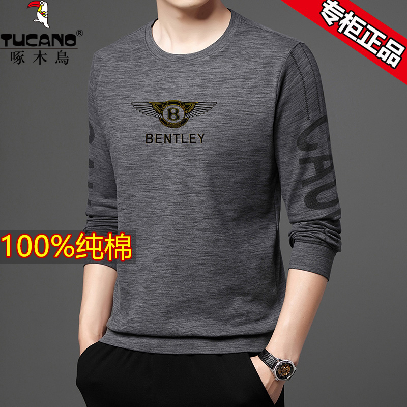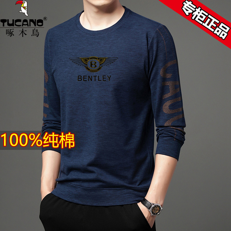 啄木鸟纯棉卫衣男圆领长袖t恤2022年秋季新款男装打底衫韩版上衣