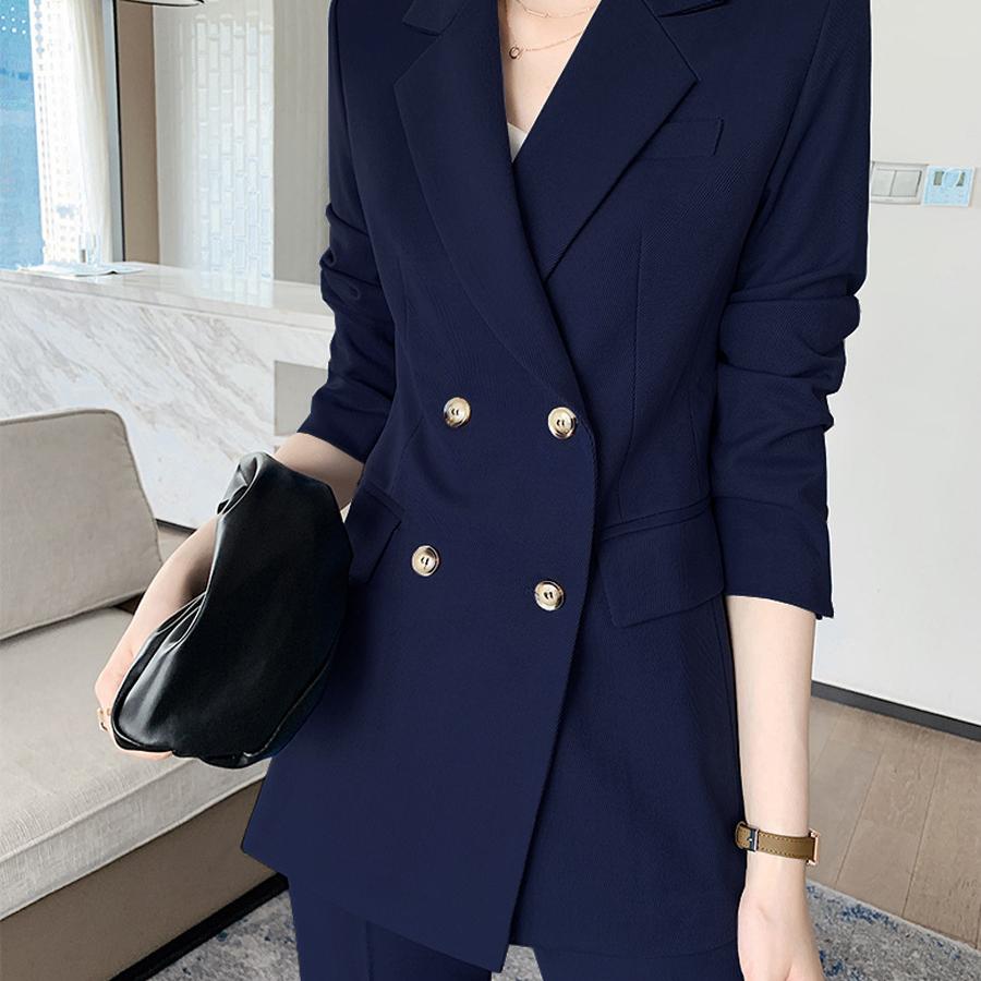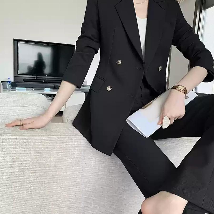 大码高级感西装外套女胖mm春秋时尚高个子喇叭裤职业正装黑色套装