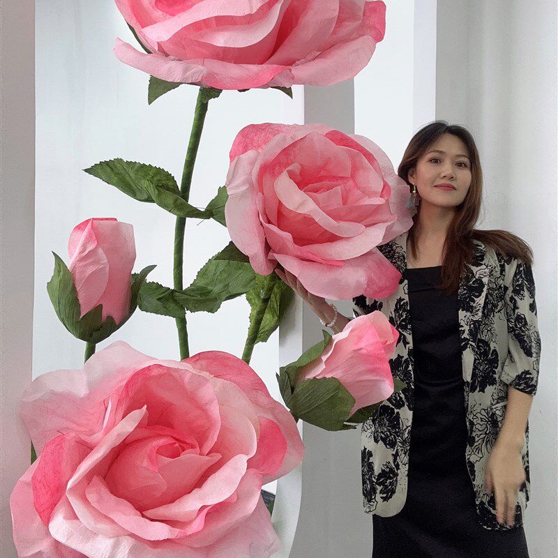巨型粉玫瑰纸花艺婚礼大玫瑰道D具商场摆件网红橱窗布置装饰