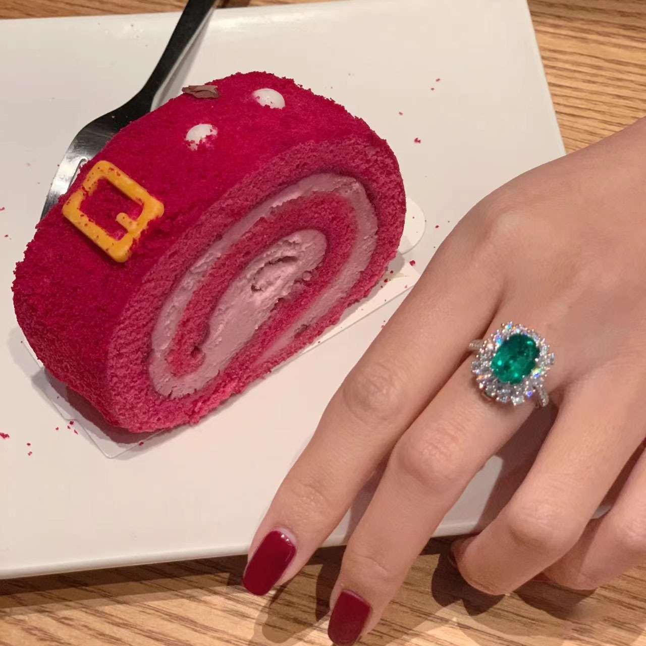 新款时尚高级感祖母绿戒指女开口法式复古彩宝气质百搭奢华食指戒