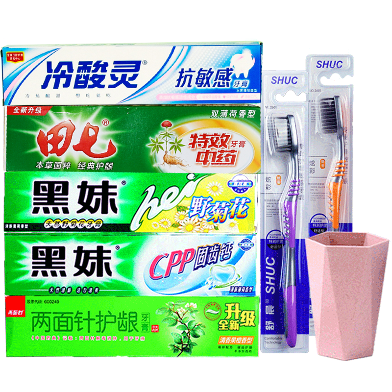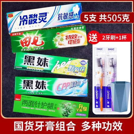 5支国货品牌牙膏组合515g 家庭装美白薄荷香清洁口腔草本护龈清火