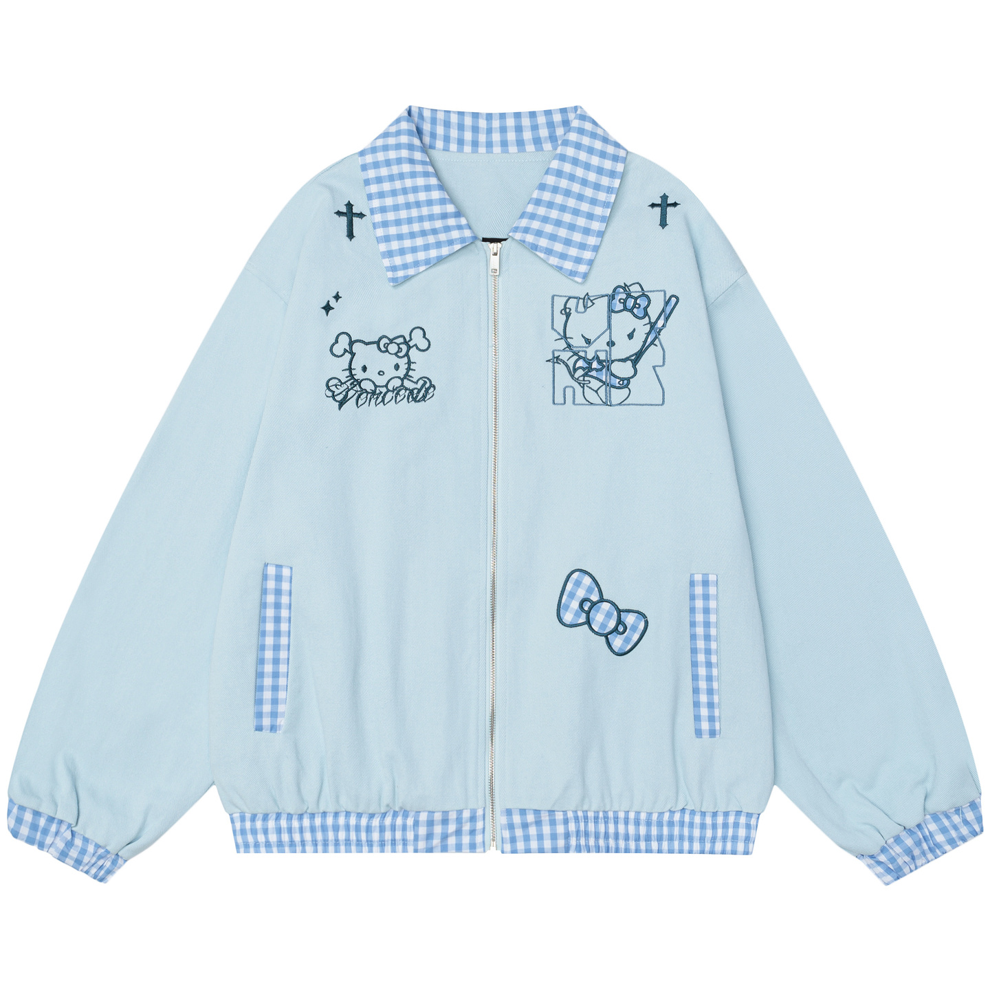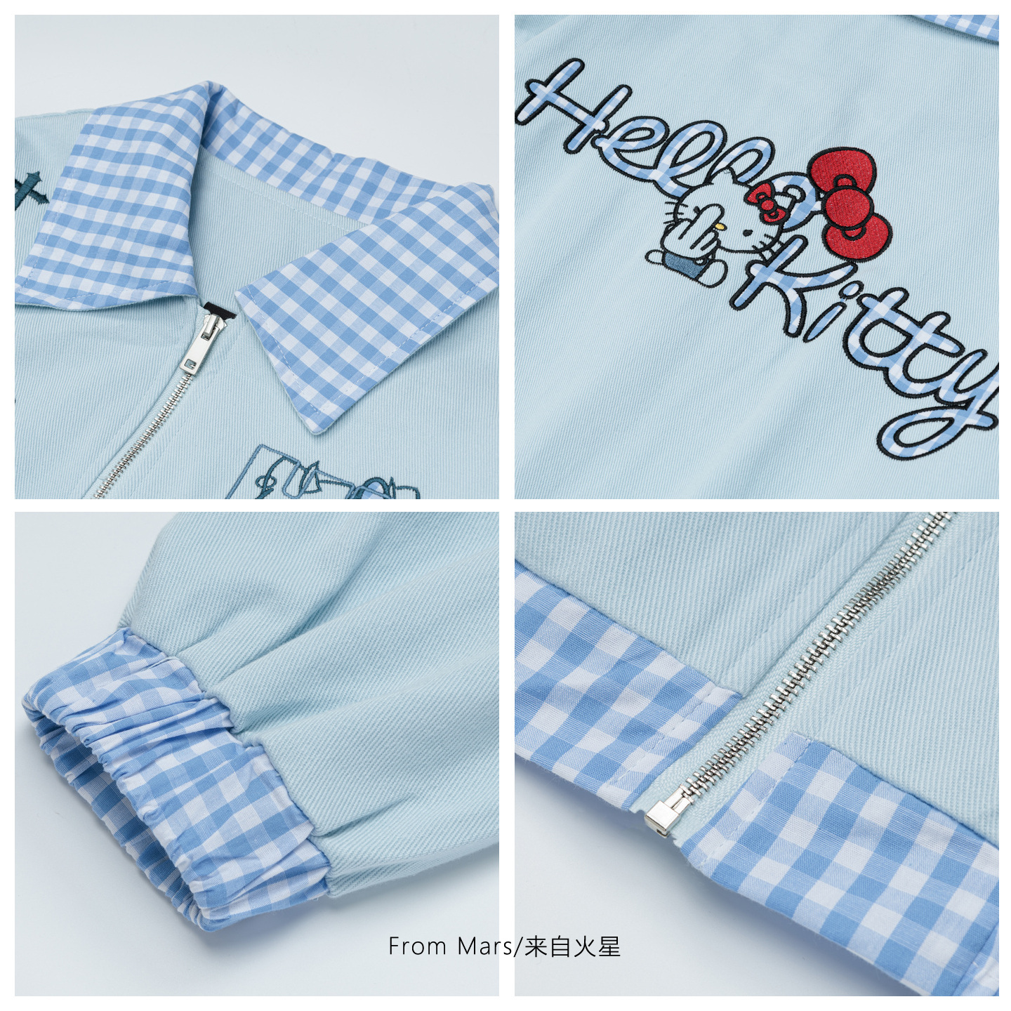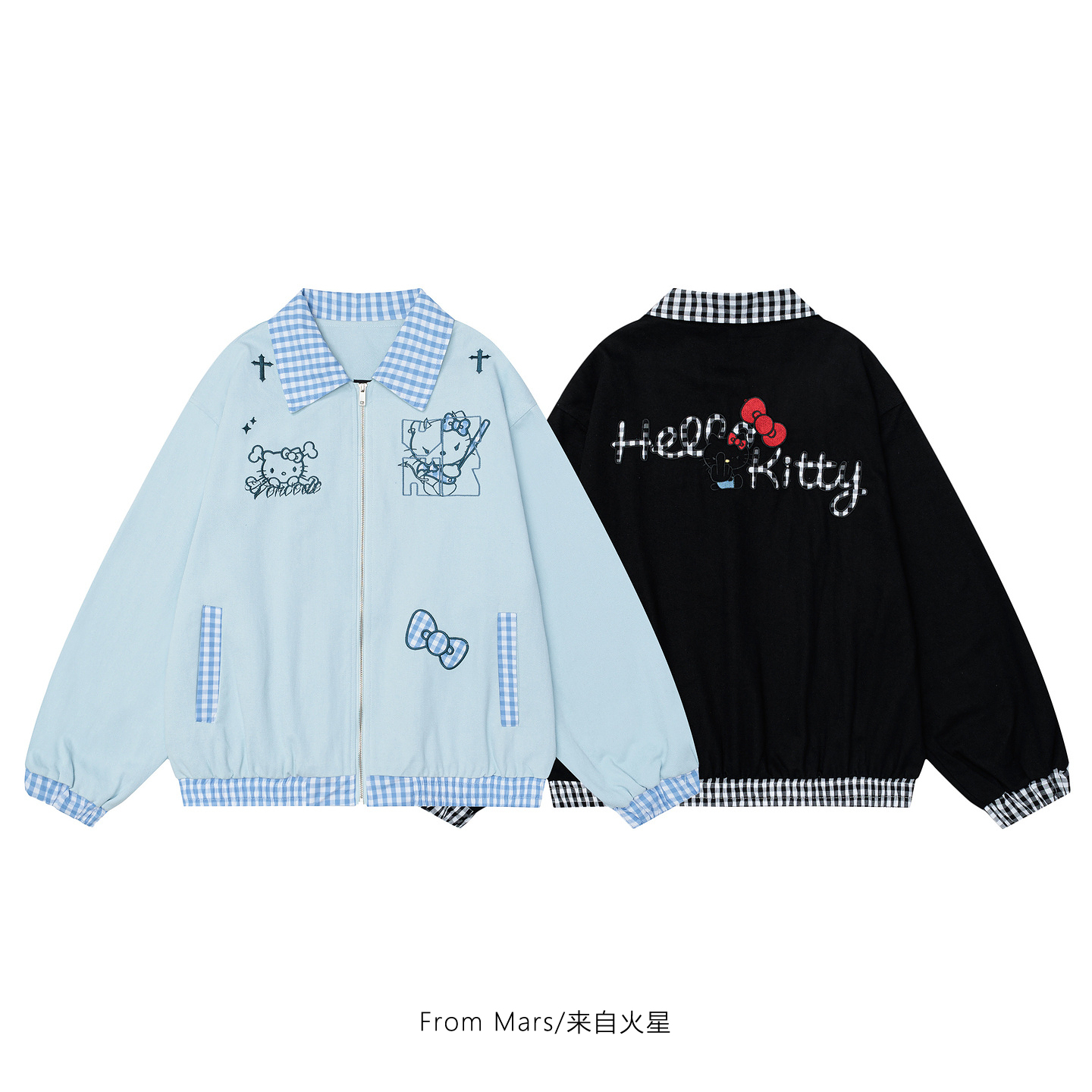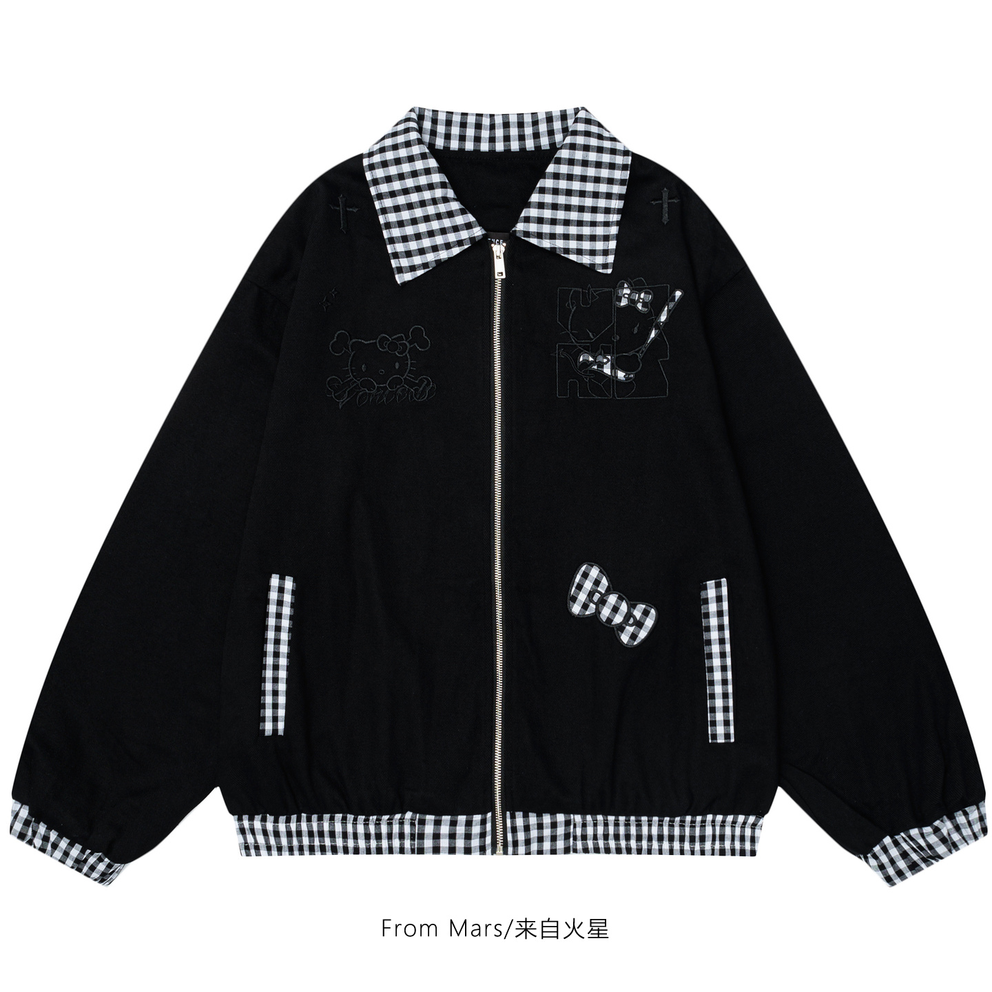 From Mars 回到从前 潮牌格子拼接小众刺绣宽松棒球服夹克外套女
