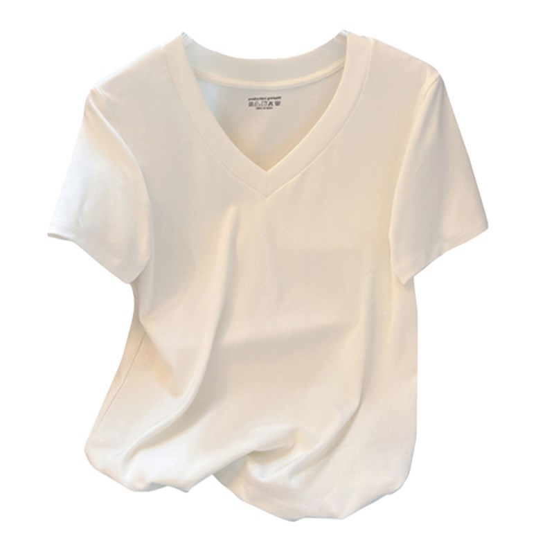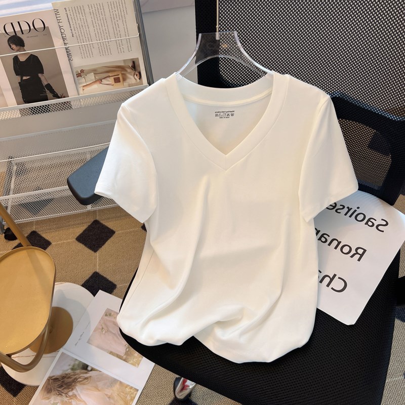 V领短袖T恤女士2024夏季新款纯色基础款宽松显瘦正肩半袖体恤上衣