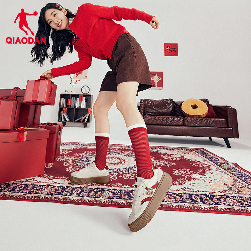 乔丹女板鞋松饼鞋红色新年简约厚底德训鞋商场同款本命年运动鞋女