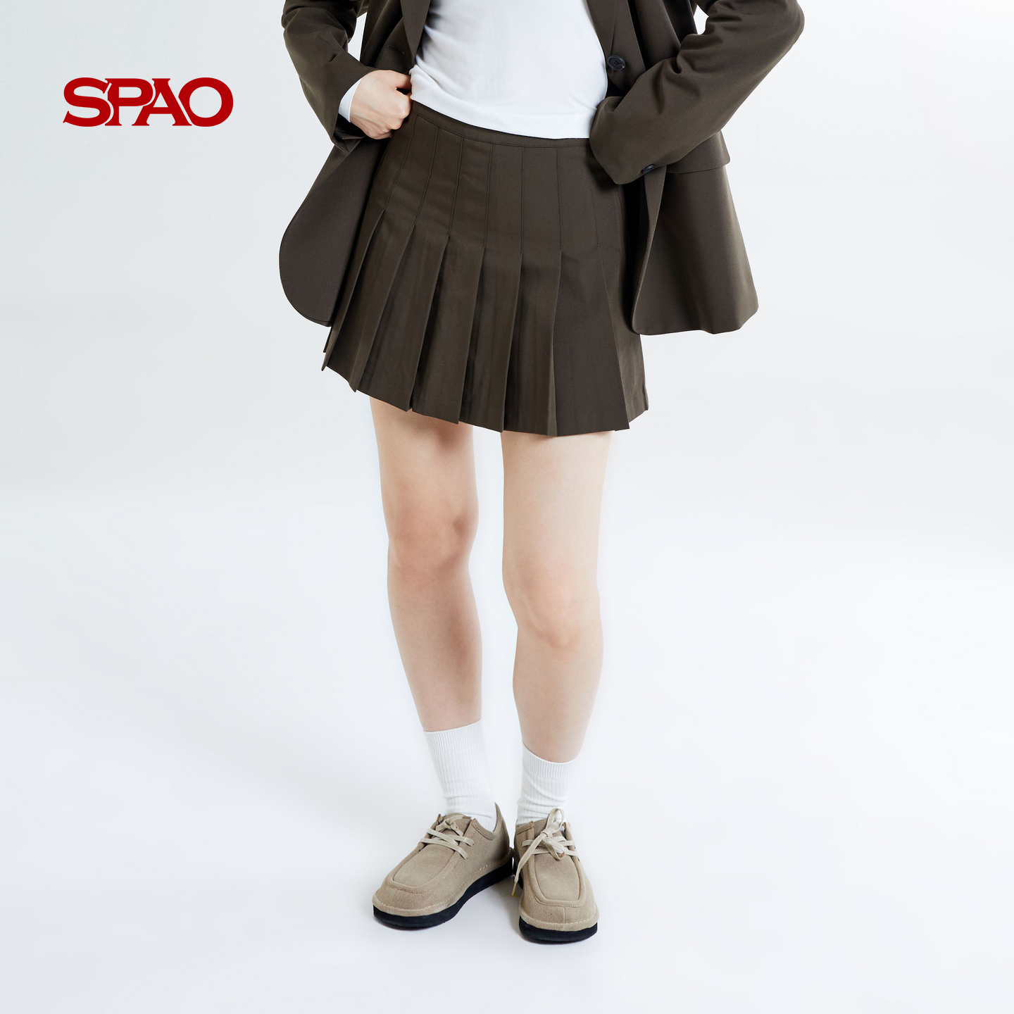 SPAO韩国同款冬季女士气质易搭纯色百褶裙短裙