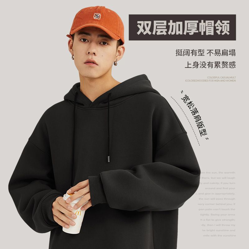 回力美式高街连帽卫衣街头复古春秋季情侣宽松潮牌重磅帽衫外套男
