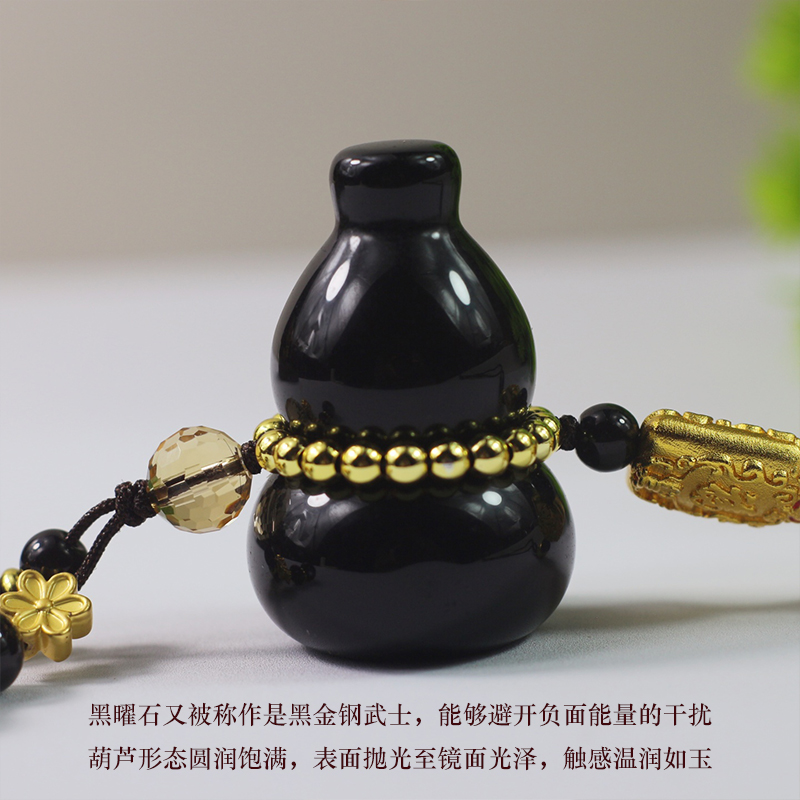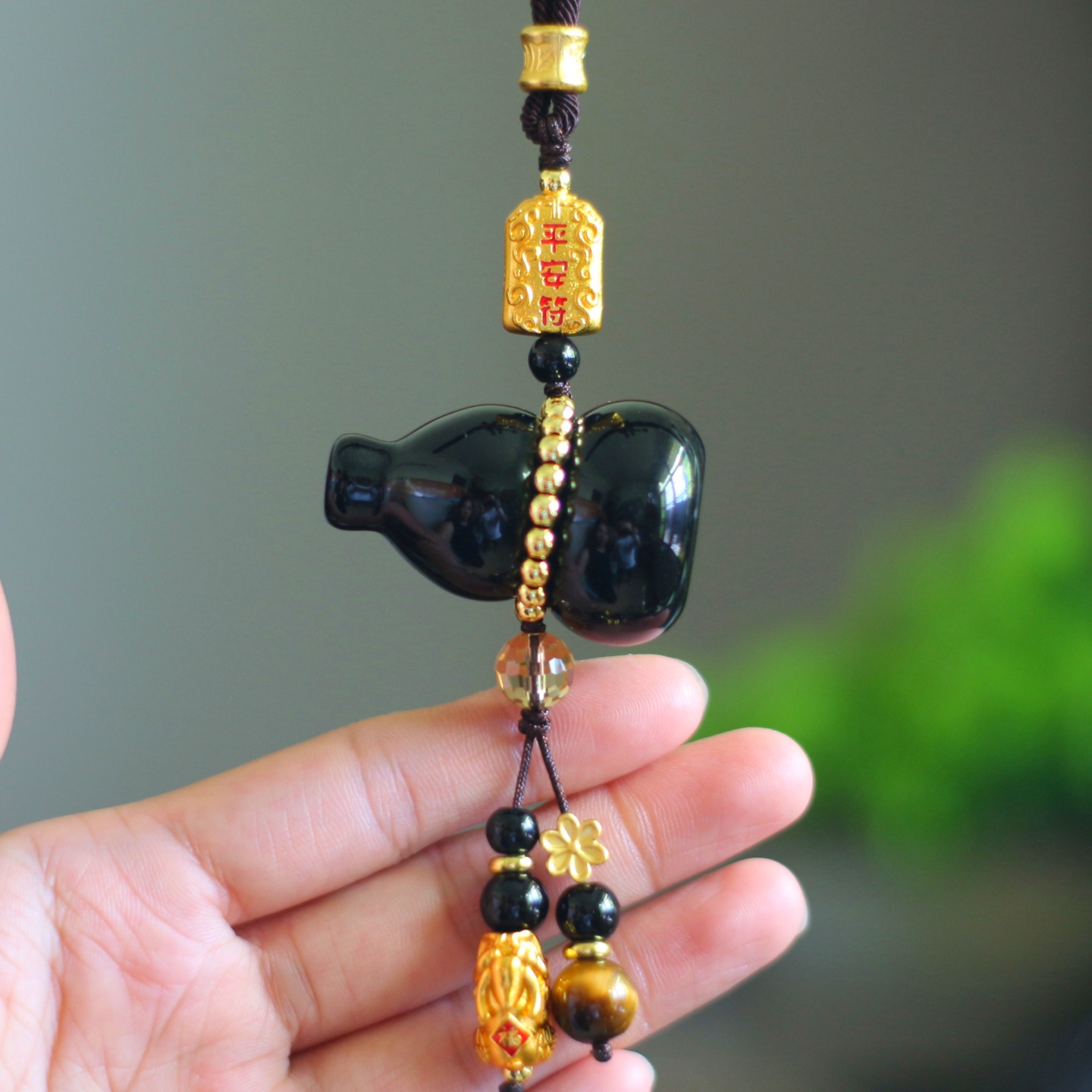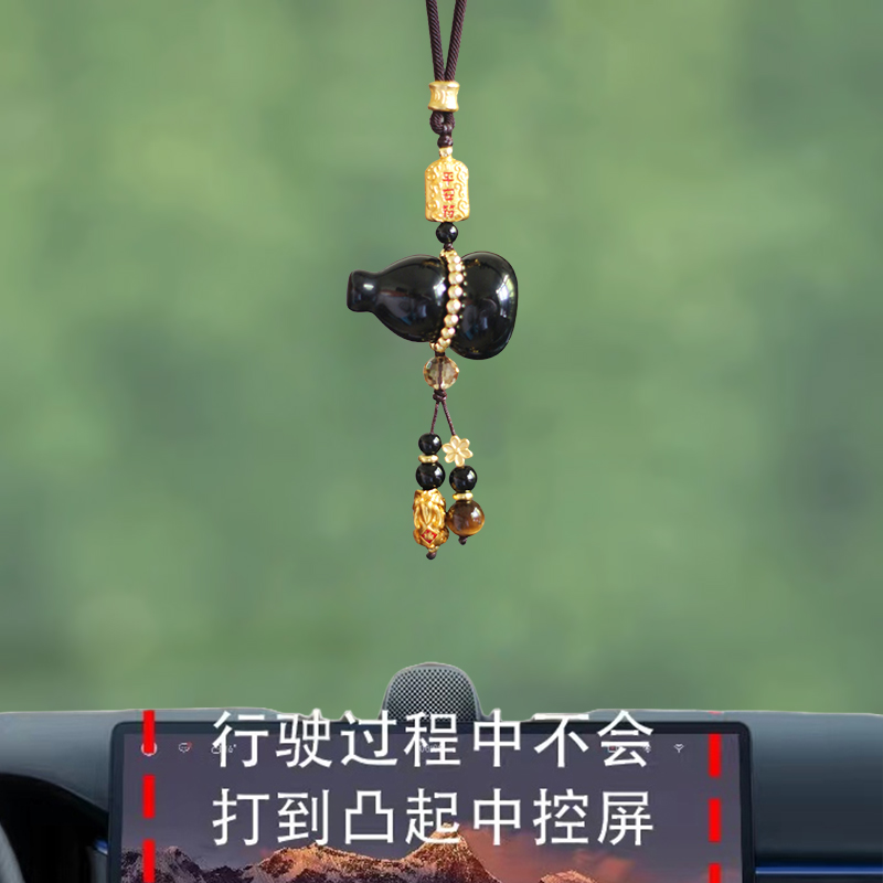 2025新款高级感黑曜石葫芦平安汽车挂件短款黑金车载车内挂饰男女