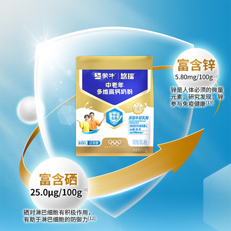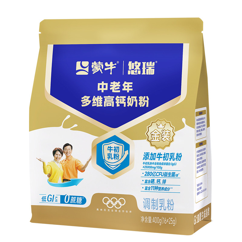 蒙牛金装中老年人奶粉400g 多维高钙营养早餐冲饮0蔗糖成人牛奶粉