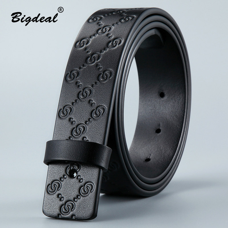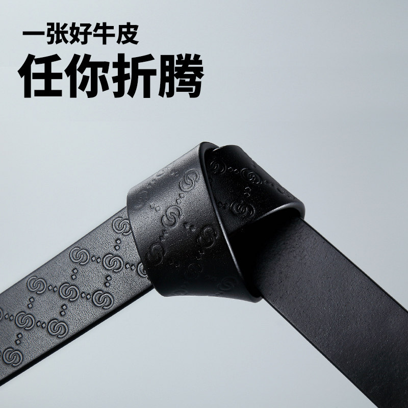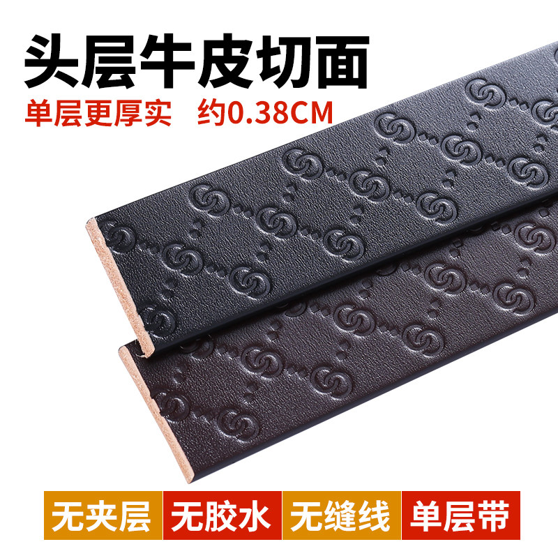 不带头皮带男真皮头层牛皮平滑扣内穿h纯带身无头腰带条不带无扣