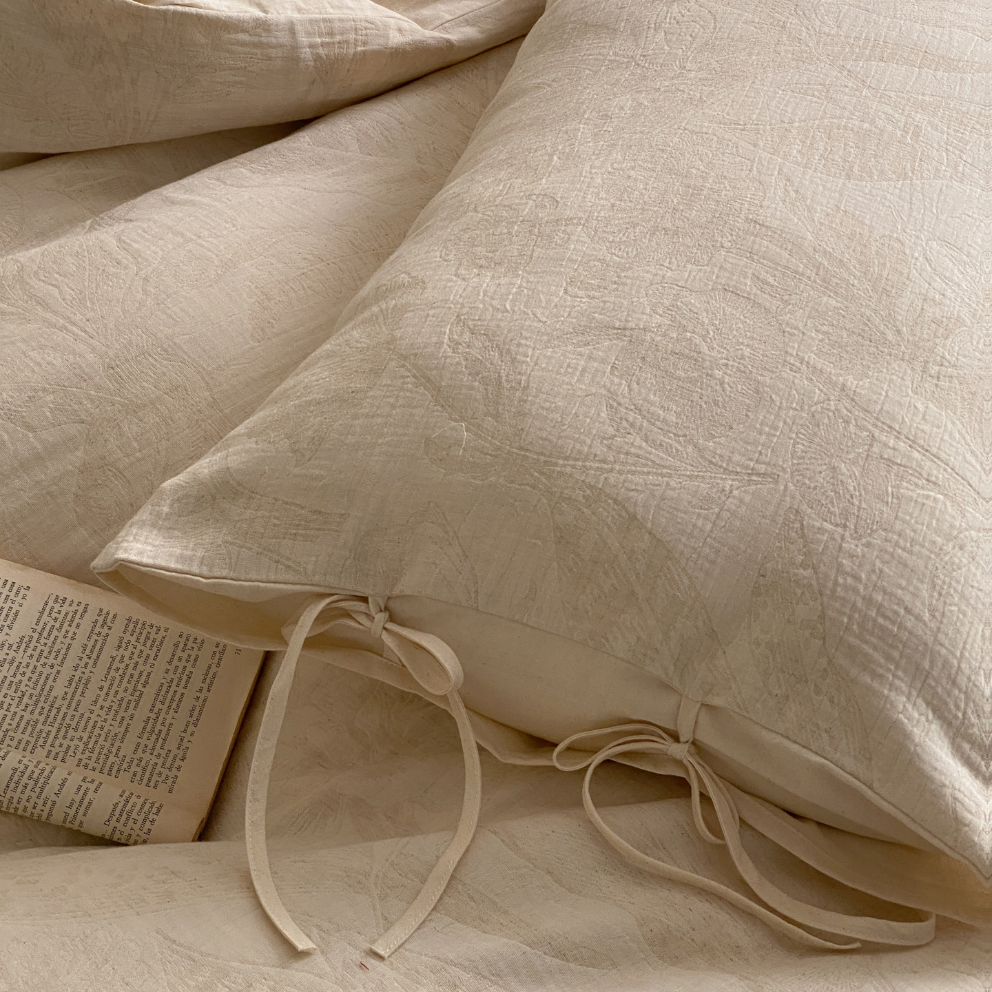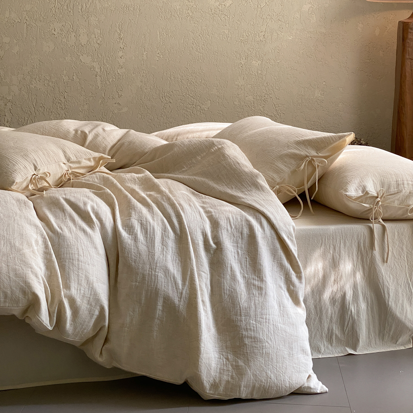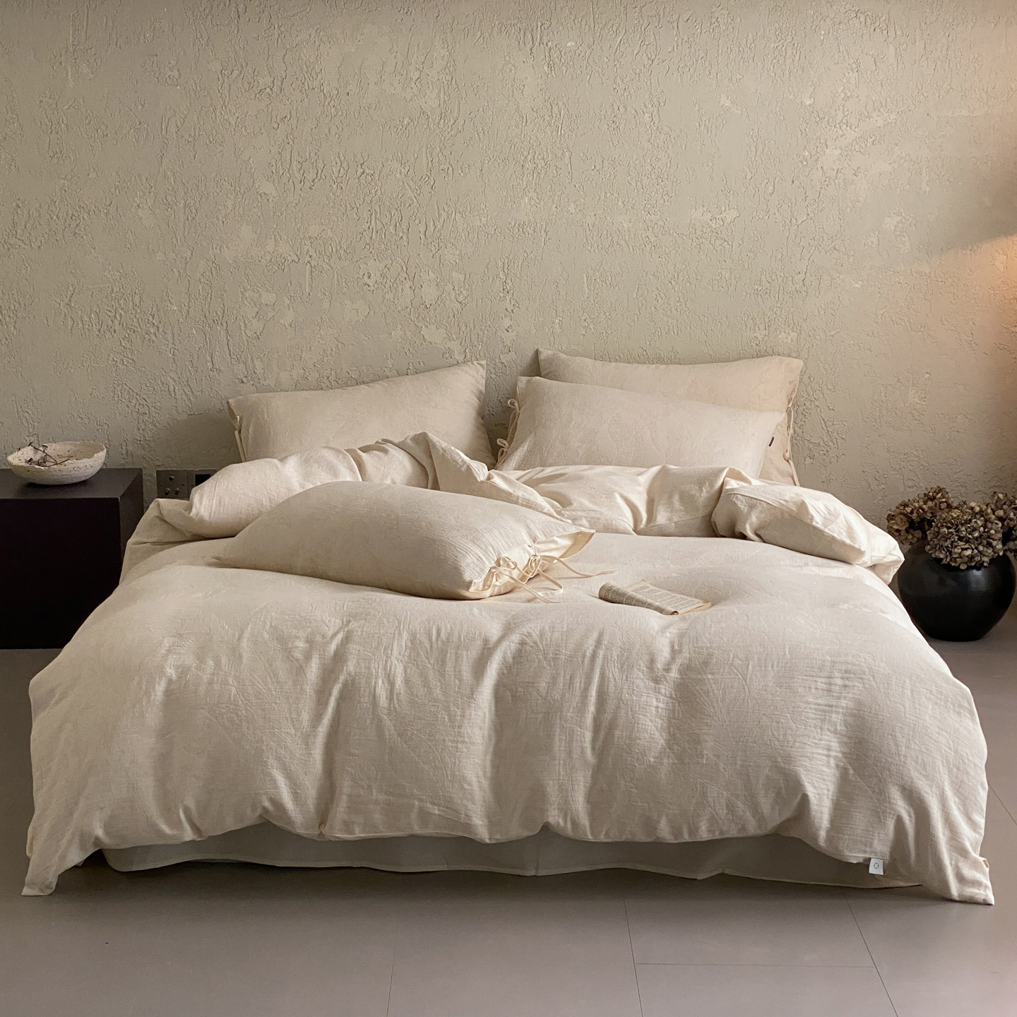 红花车A类水洗棉麻提花四件套被套床单亲肤家用透气1.8m床上用品