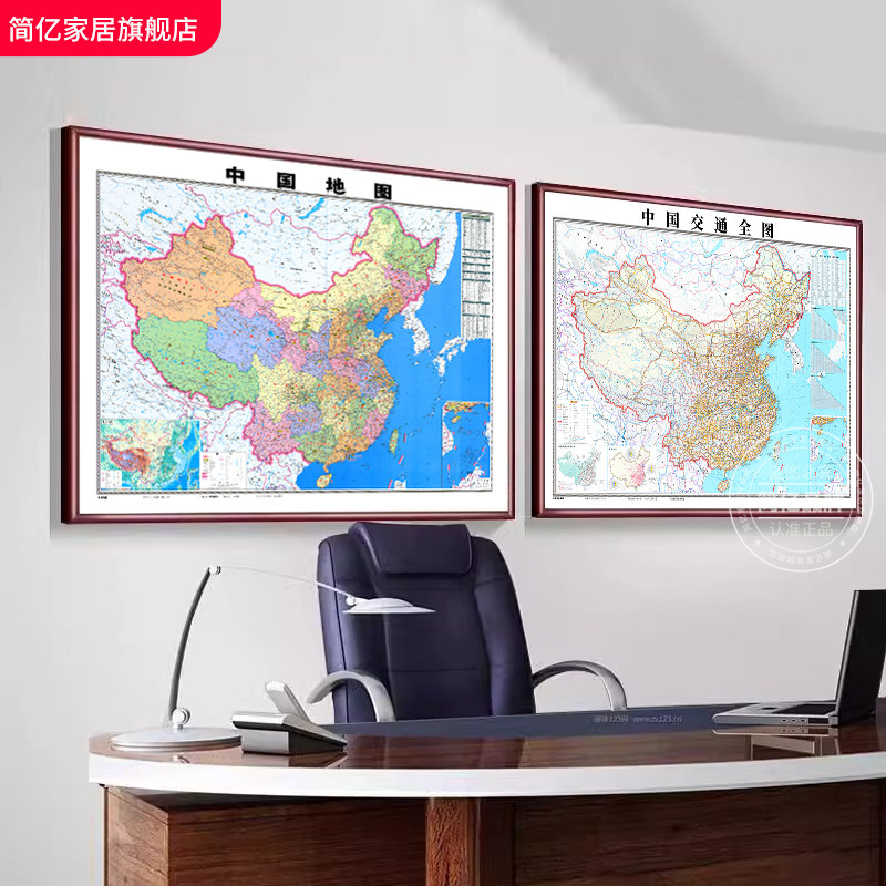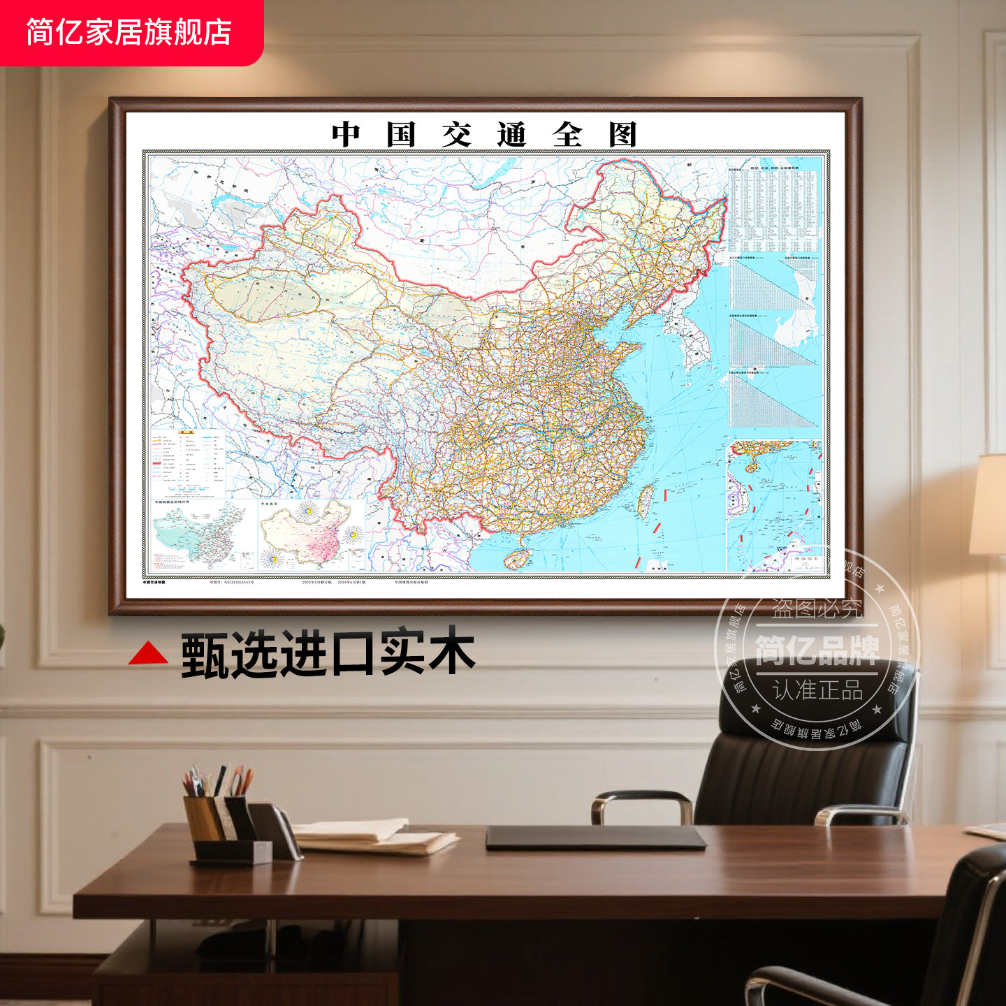 中国交通全图地图办公室墙面高清装饰画定制大尺寸挂画实木框装裱