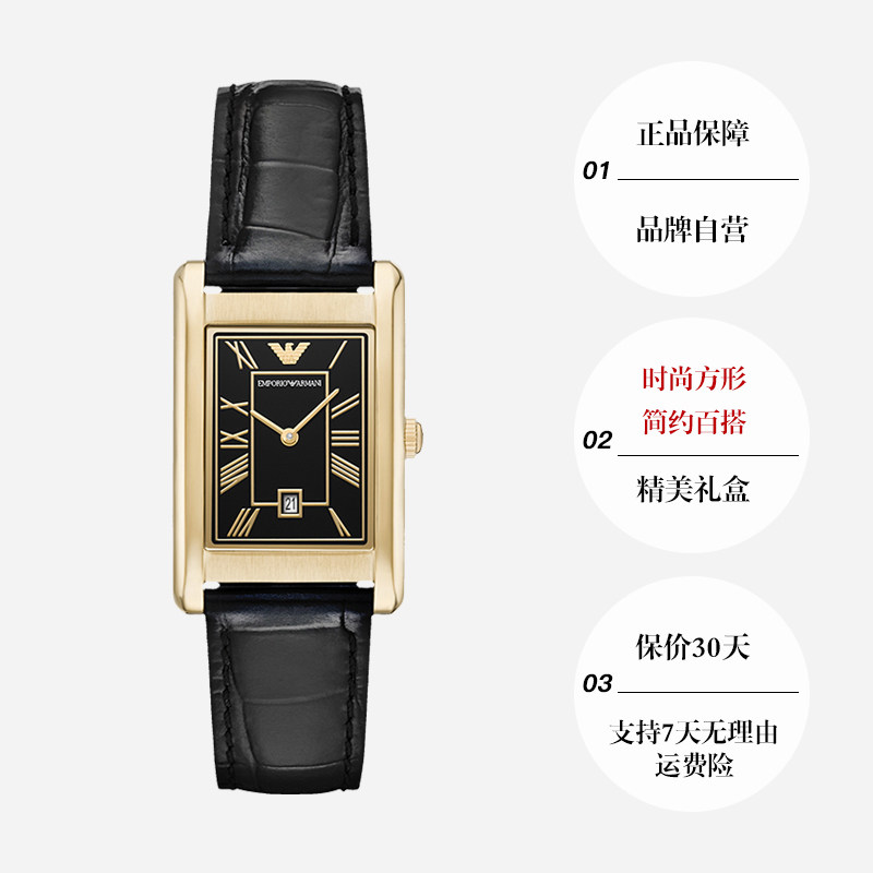 【自营】Armani阿玛尼手表男女同款中性简约方形商务石英AR11666