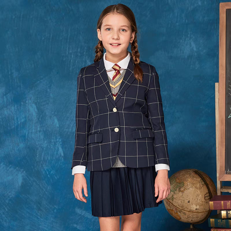 伊顿纪德校服藏青格子西装男女童中小学演出服西服外套13Z111/211