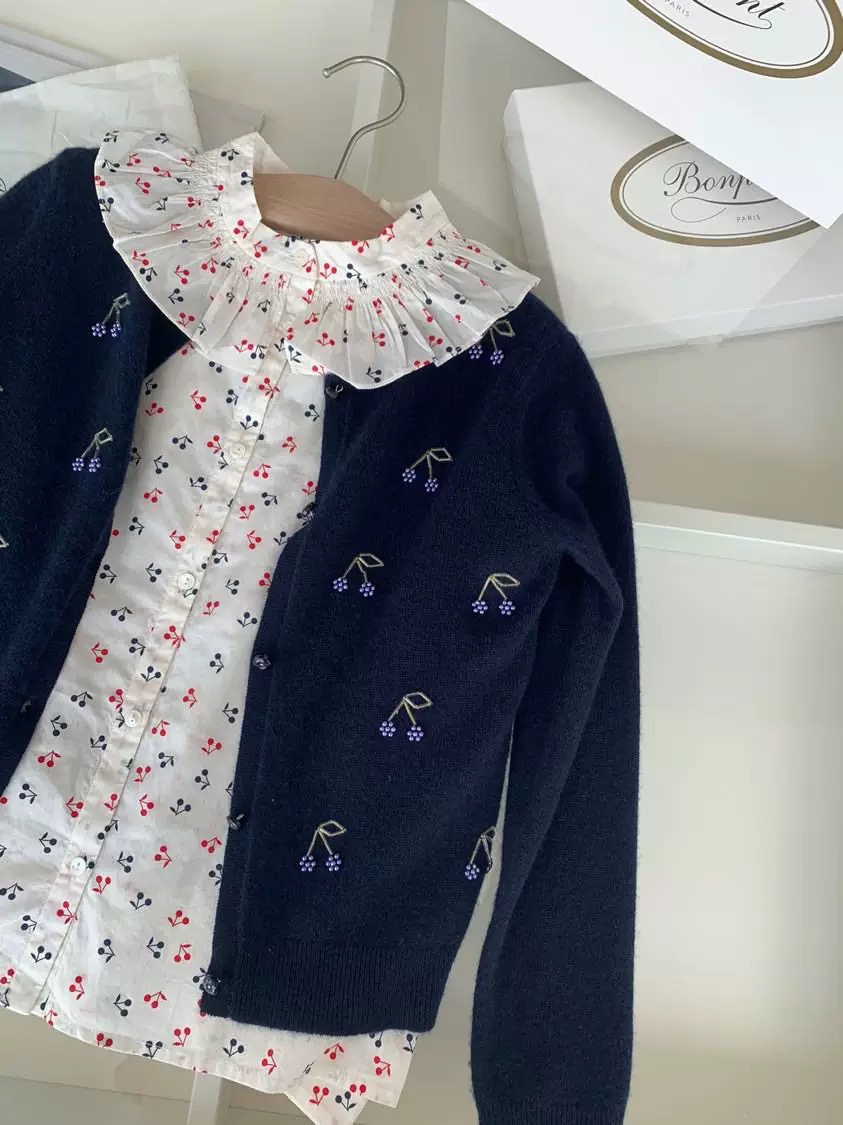 2025秋冬新款B/P女童中大童纯棉长袖樱桃外披薄款洋气甜美衬衫