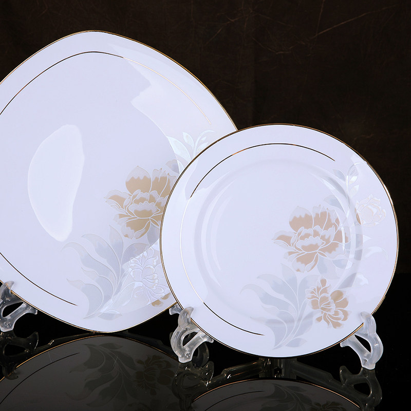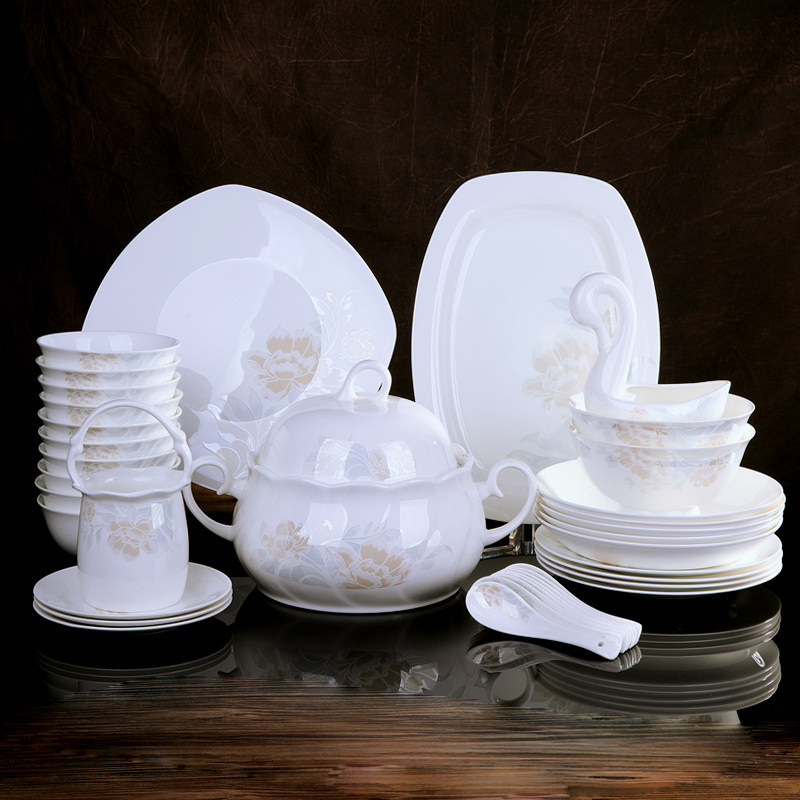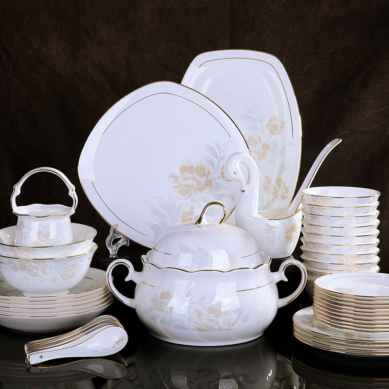 锦秋堂 景德镇骨瓷餐具套装 家用陶瓷器碗盘组合中式高脚碗不烫手