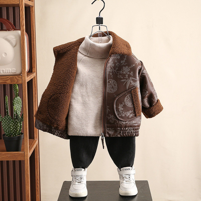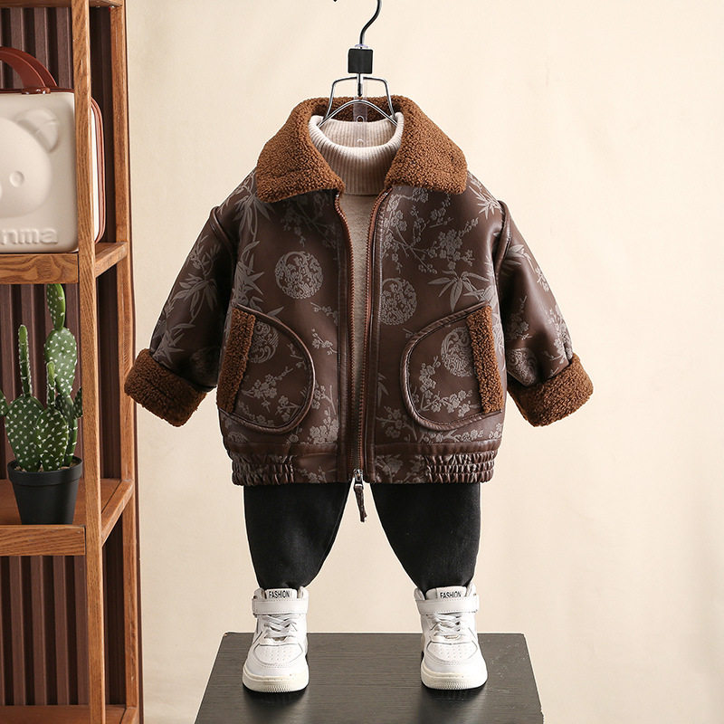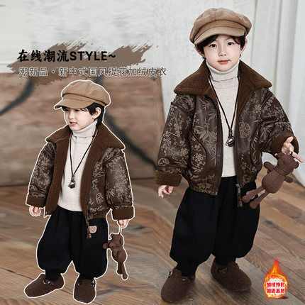 男童2025秋冬季新款加绒加厚外套韩版皮衣夹克宝宝夹棉衣服冬装潮