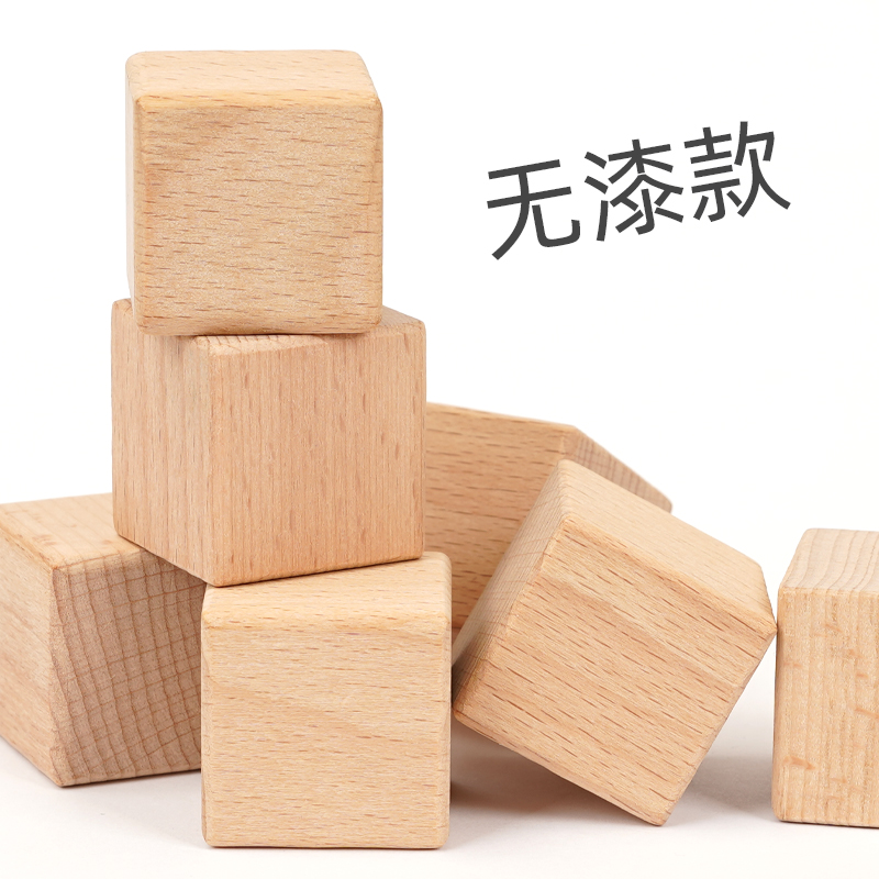 榉木大颗粒原木无漆积木婴儿童益智宝宝实木木头早教拼图桶装玩具