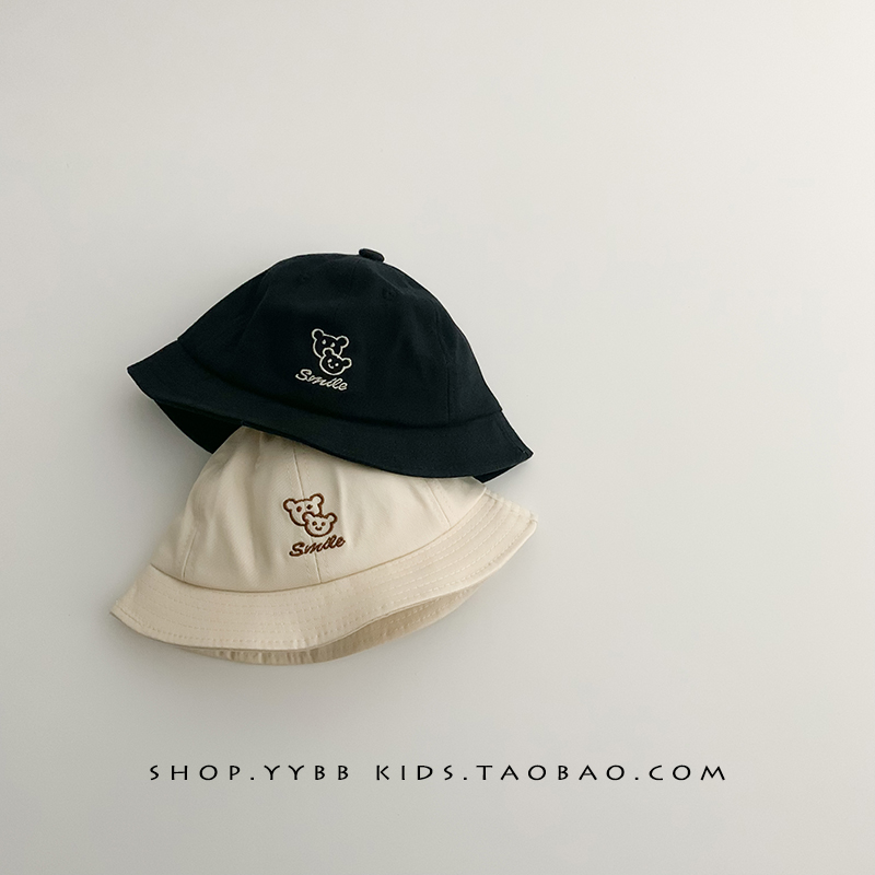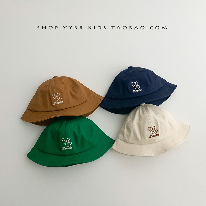 韩国小熊刺绣宝宝渔夫帽子春秋款婴儿男宝女童出游防晒遮阳帽盆帽