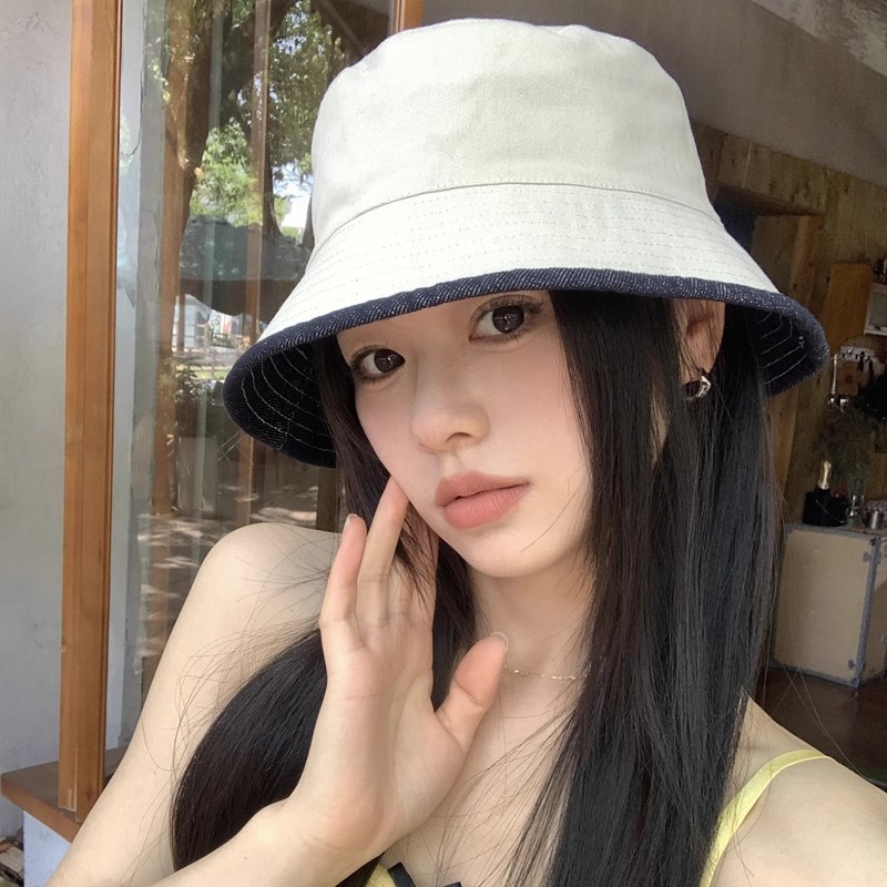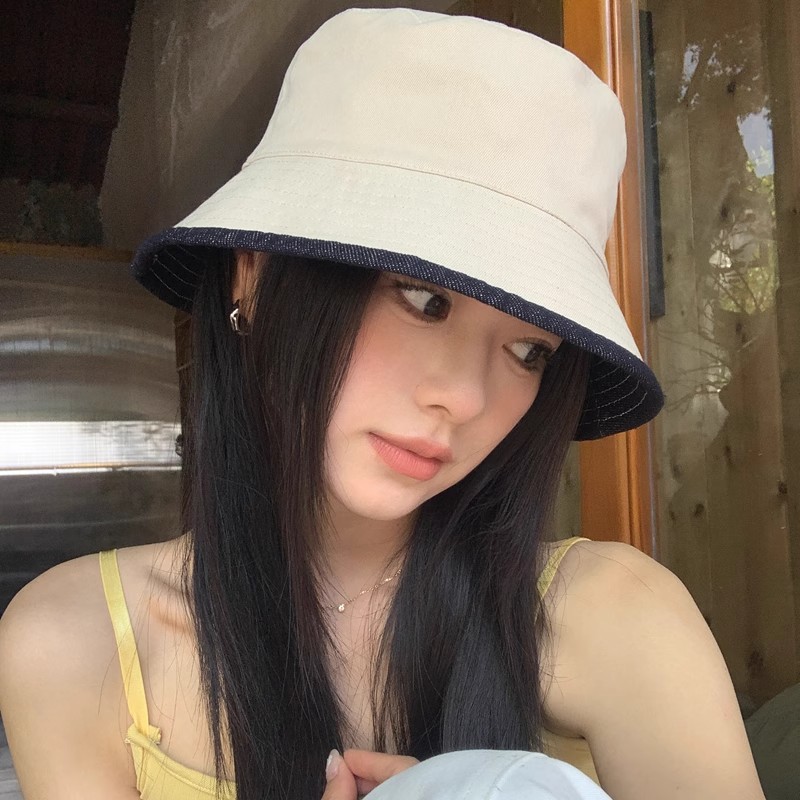 显脸小渔夫帽子女2025遮阳百搭牛仔蓝防晒新款盆帽潮大檐可折叠
