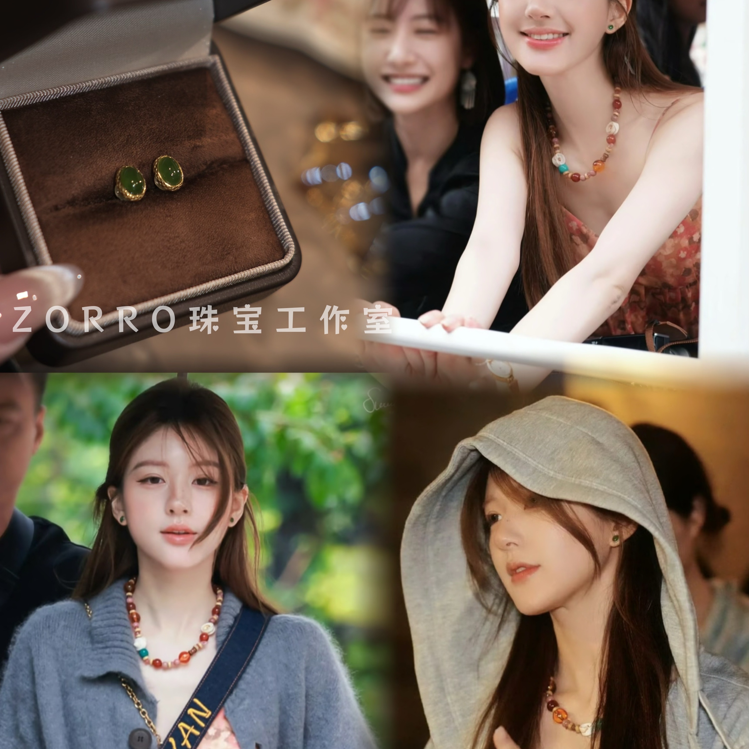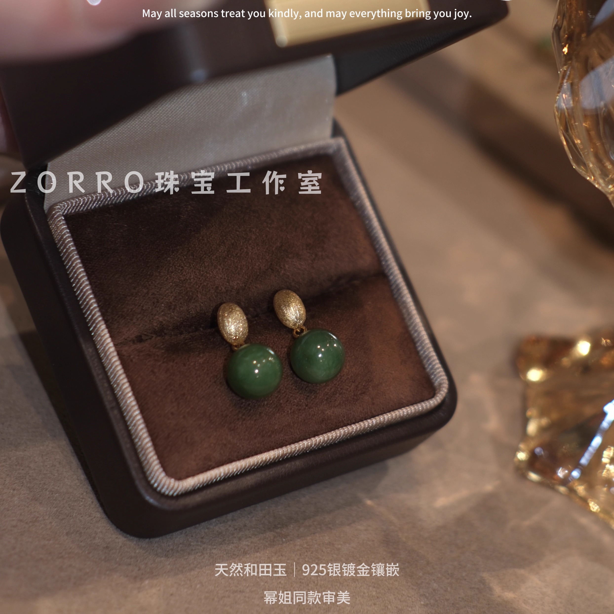 赵露思同款天然和田玉耳钉S925纯银耳环新中式高级感珠宝翡翠礼物