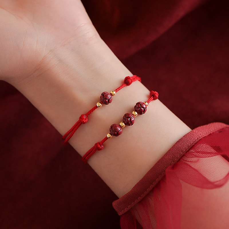 巷南朱砂莲花红绳手链小众