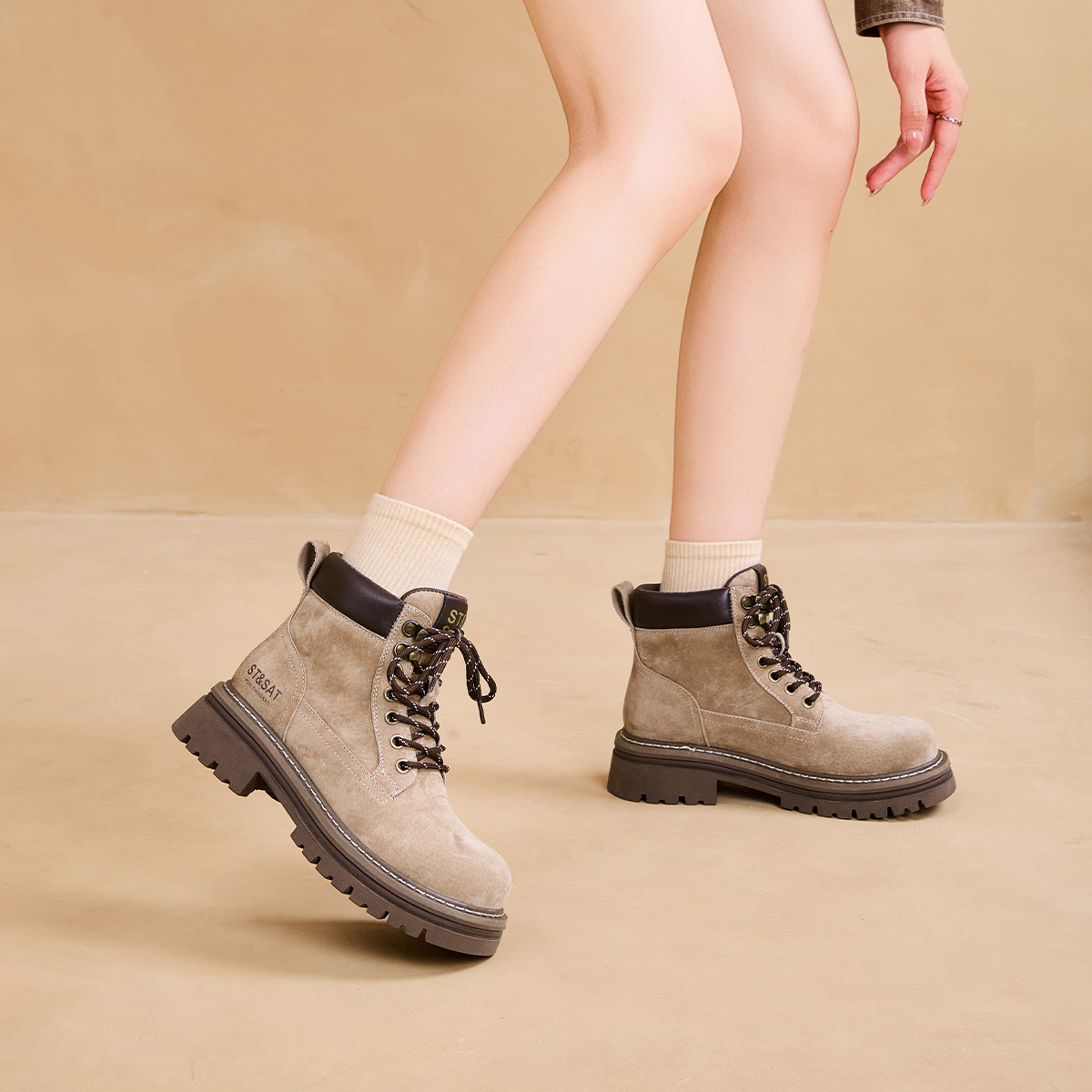 星期六英伦风马丁靴女2026春季新款复古百搭厚底短靴
