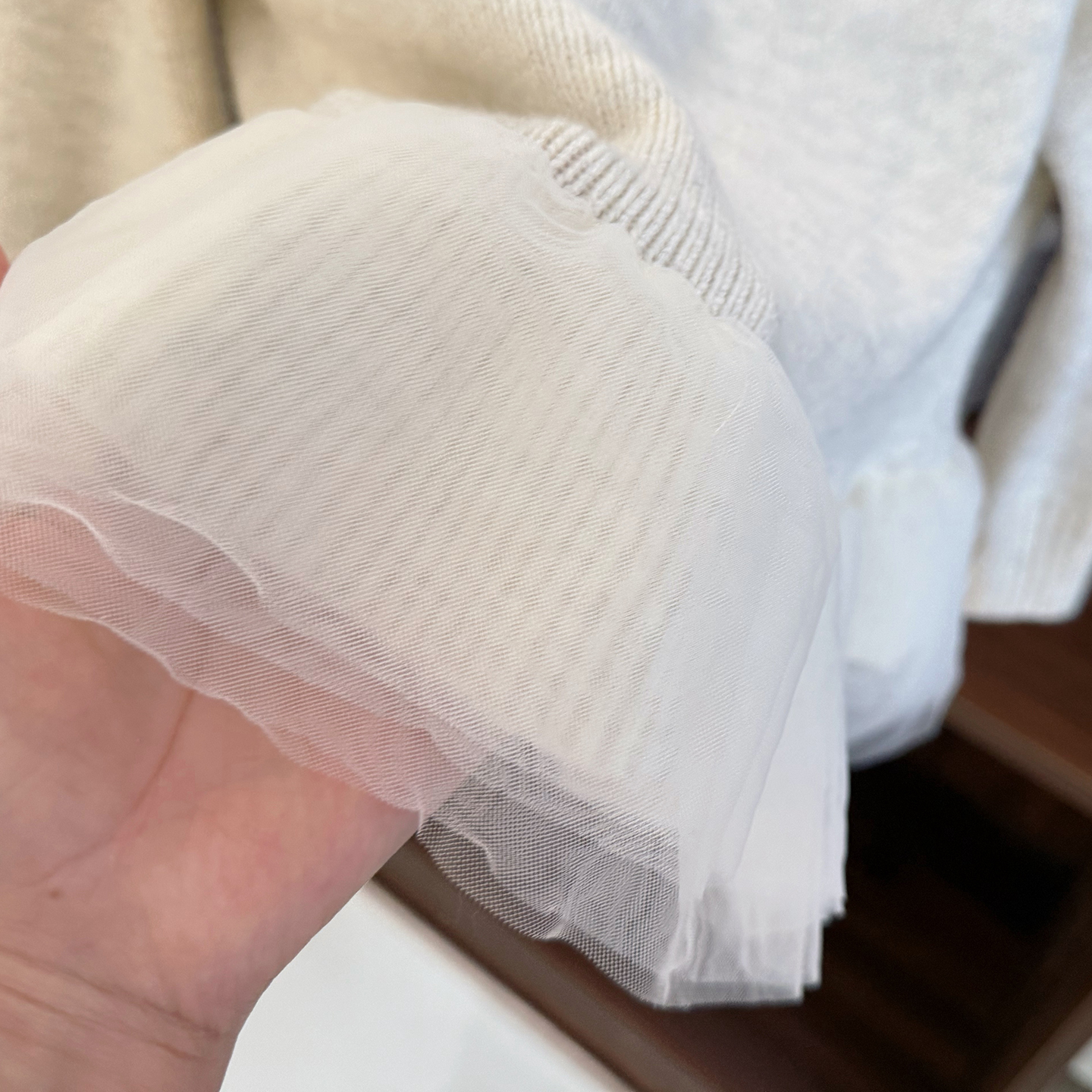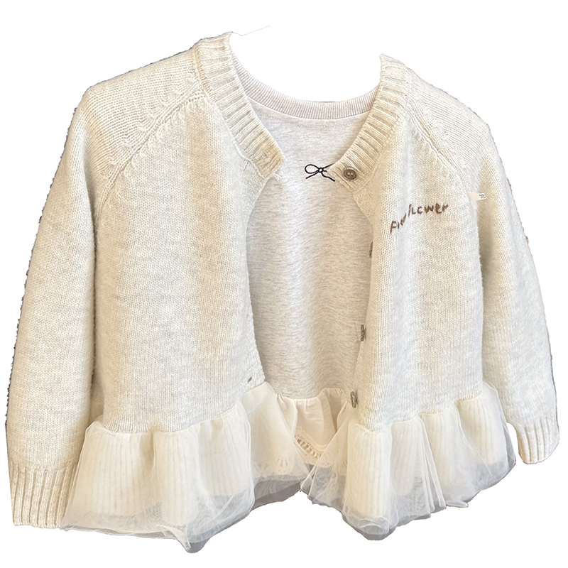 女宝宝高级质感针织开衫女婴儿童春秋款2025新款女童拼纱毛衣外套