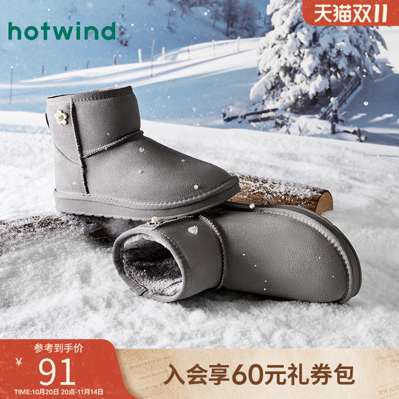 热风女鞋冬季女士百搭短筒加厚保暖舒适休闲雪地靴加绒