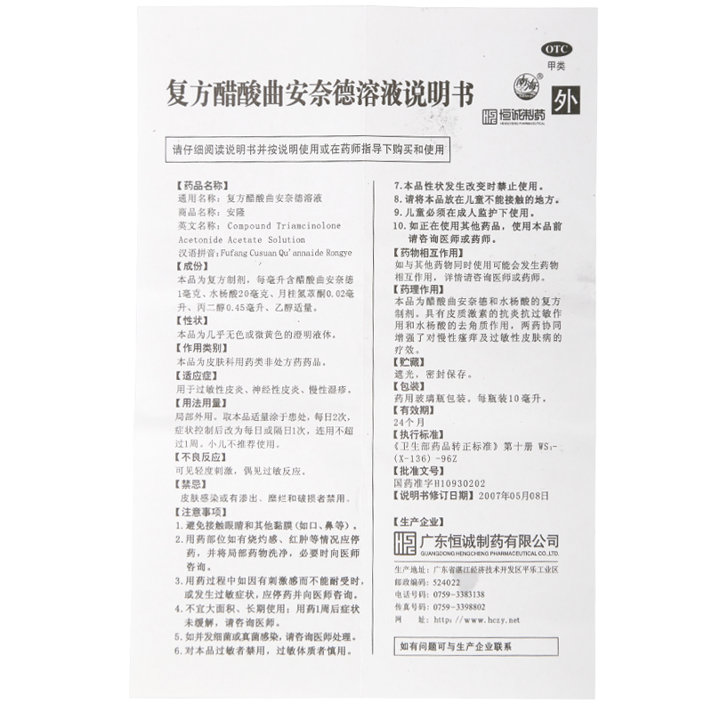 安隆复方醋酸曲安奈德溶液10ml神经过敏性皮炎湿疹