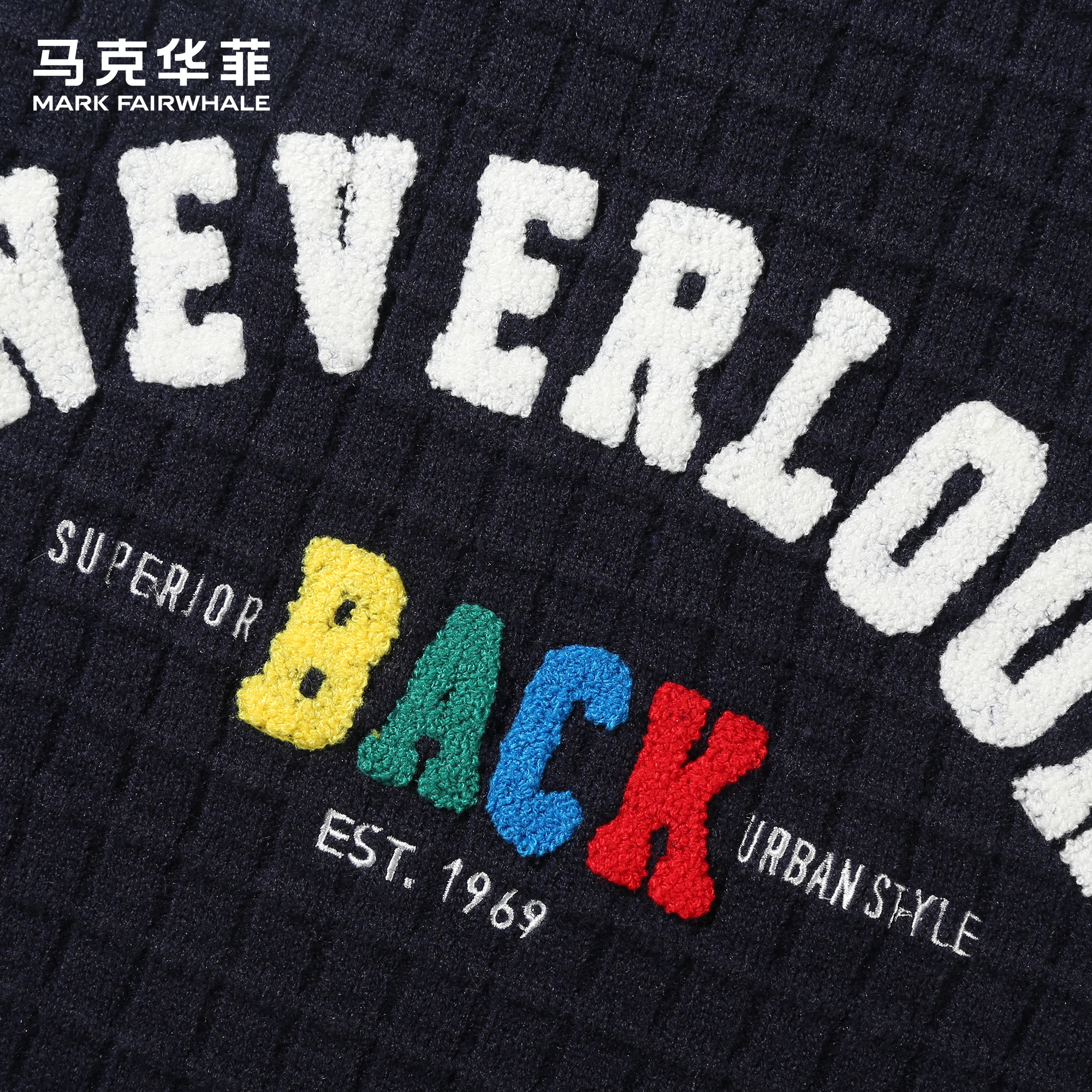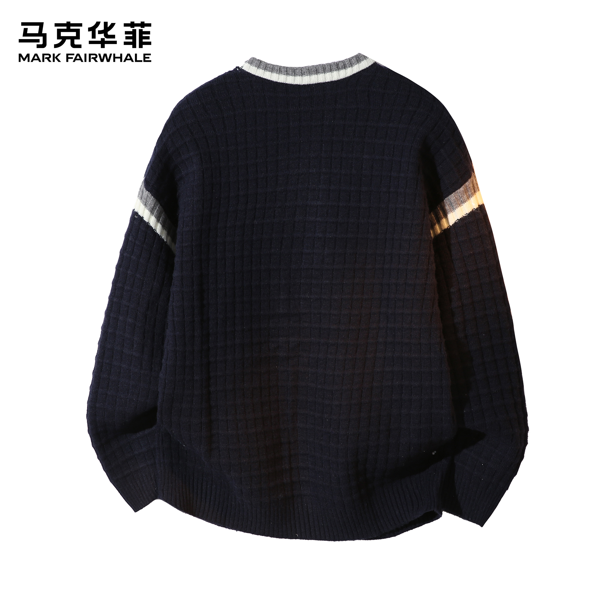 马克华菲毛衣男款潮牌美式字母刺绣重磅保暖宽松青少年圆领针织衫