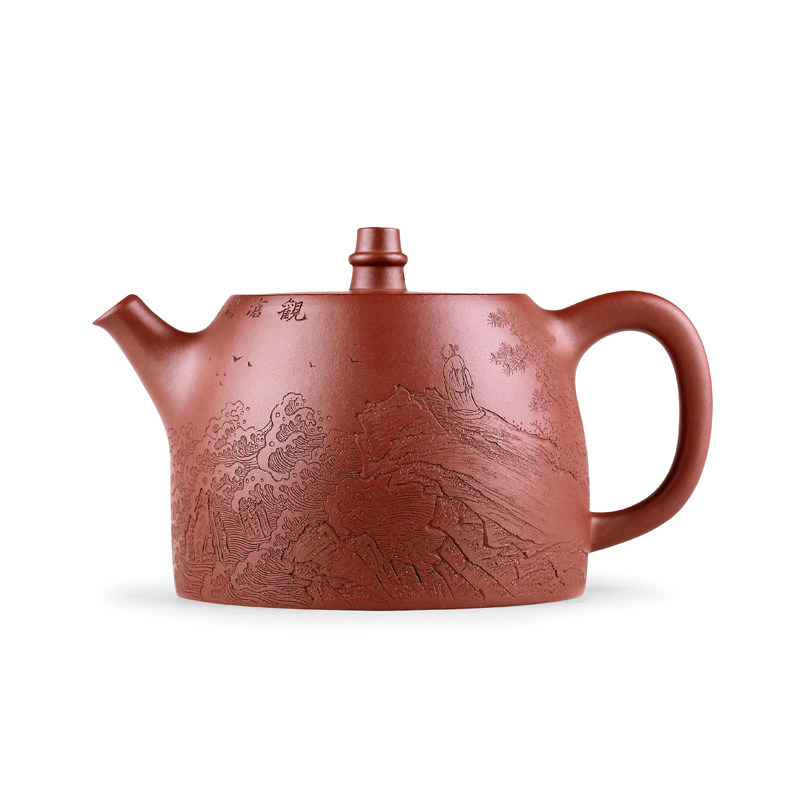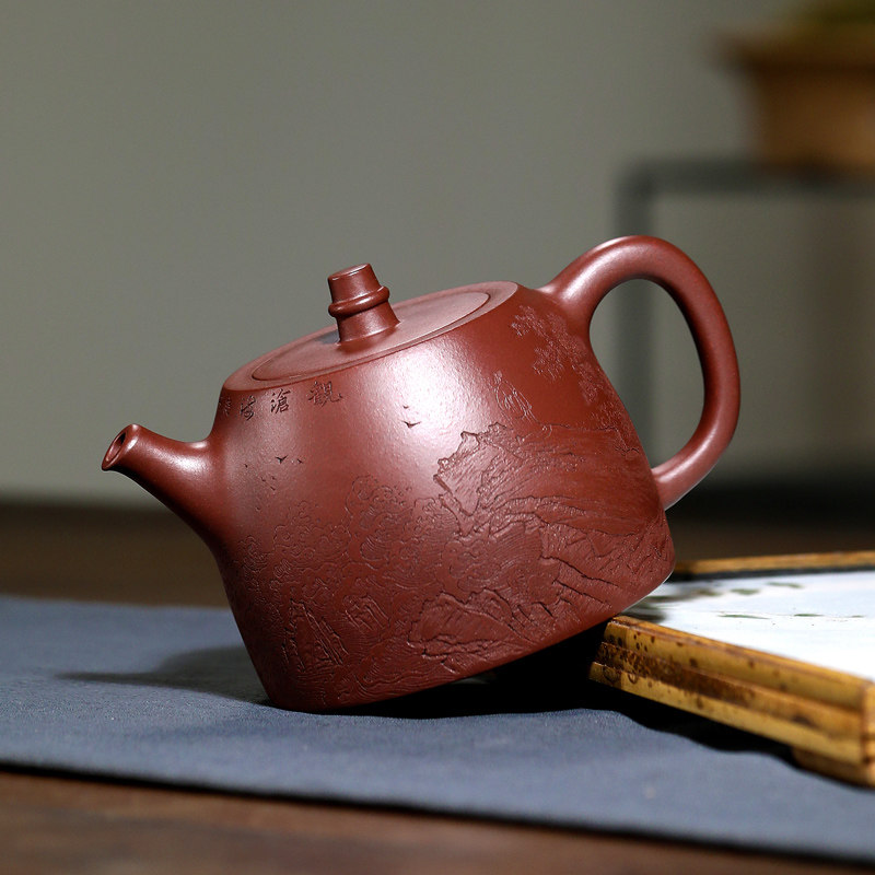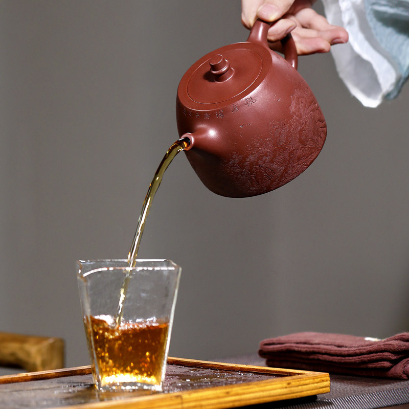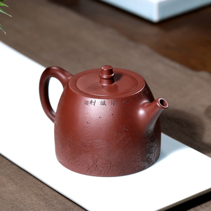 指间陶艺 宜兴紫砂壶纯全手工茶壶名家袁德波原矿紫泥刻字 汉铎壶
