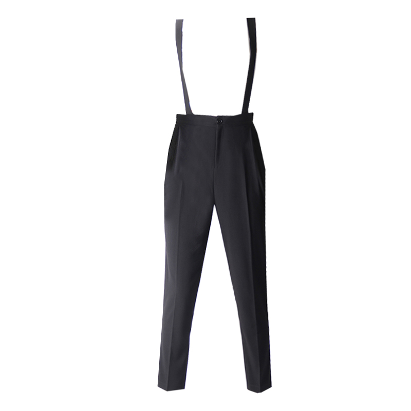素秋 春夏新款高腰西装裤女背带裤显瘦小脚萝卜裤休闲哈伦九分裤