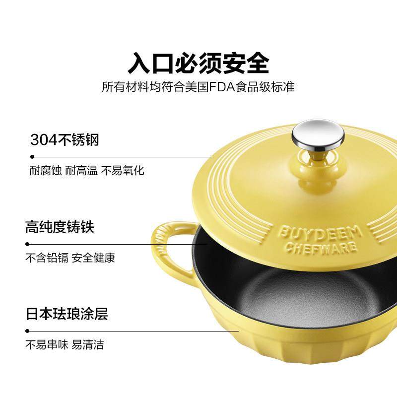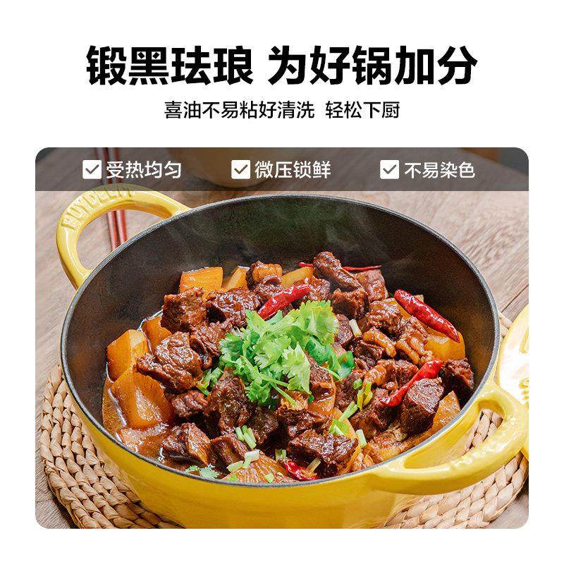 北鼎24cm珐瑯锅铸铁锅家用多功能煲汤炖锅0氟炖烧锅焖锅红烧卤煮