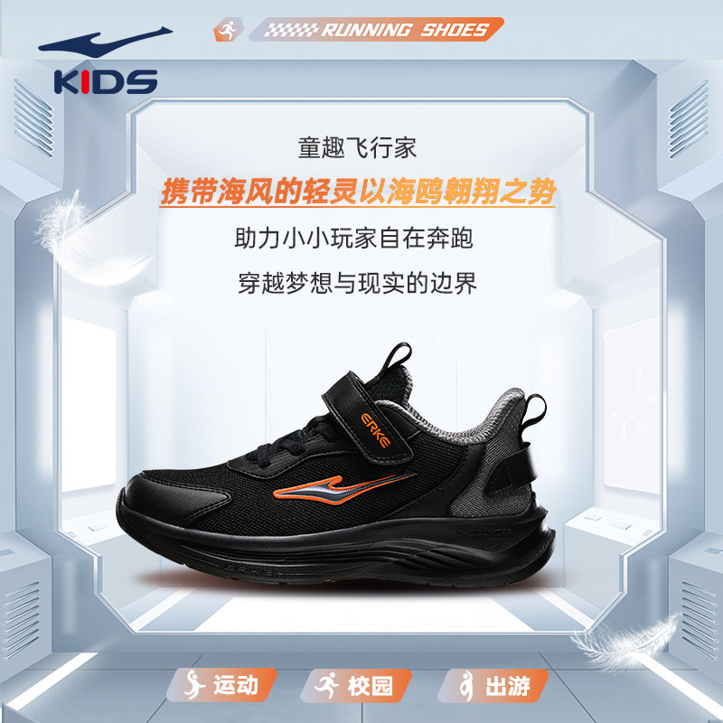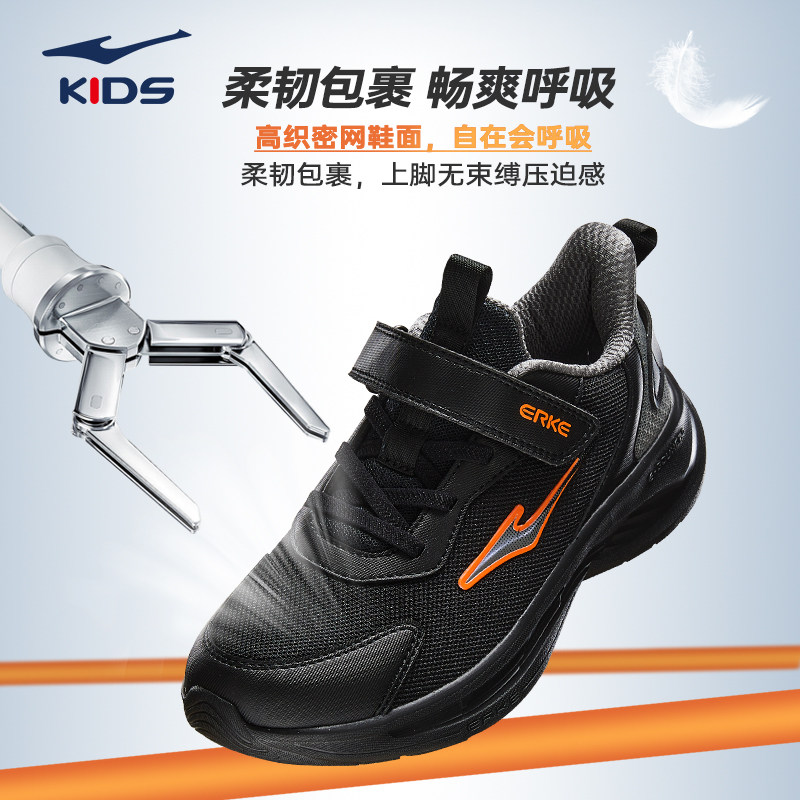 鸿星尔克男童鞋儿童运动鞋秋季新款官方正品软底黑色大童跑步鞋子