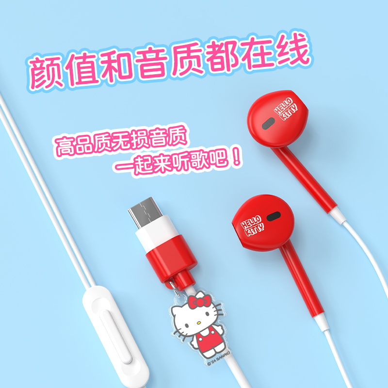 HelloKitty有线耳机半入耳typec接口高音质适用苹果华为小米15pro