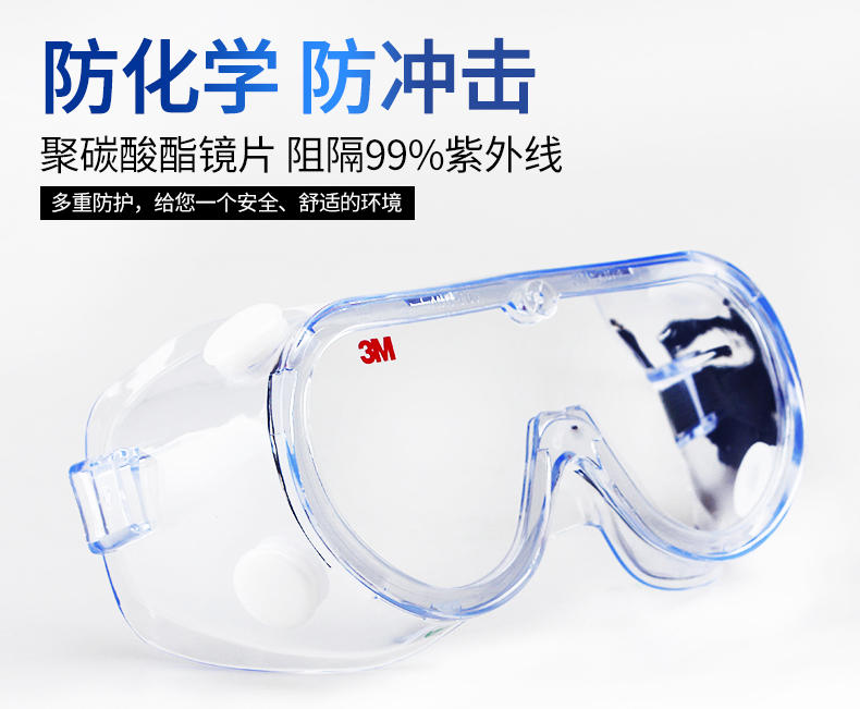 3M护目镜化学实验室专用防飞溅打磨粉尘冲击户外骑行工业防护眼镜
