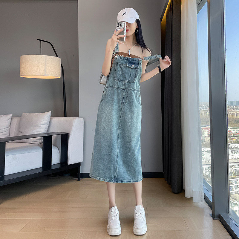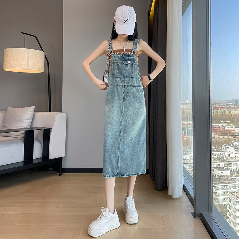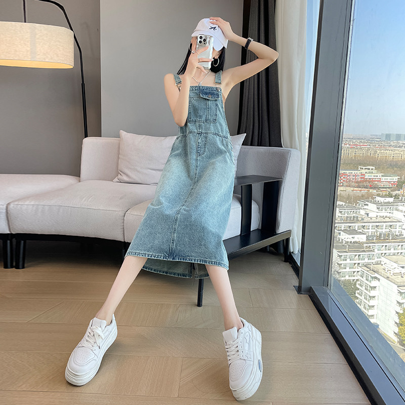 减龄休闲牛仔背带裙女中长款2025春夏季新款韩版宽松显瘦吊带裙子