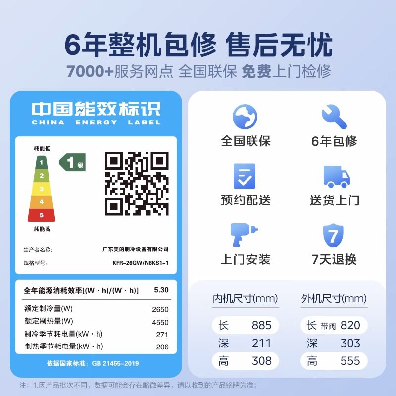 美的酷省电空调PRO挂机一级能效1.5匹1匹2匹冷暖卧室官方旗舰正品