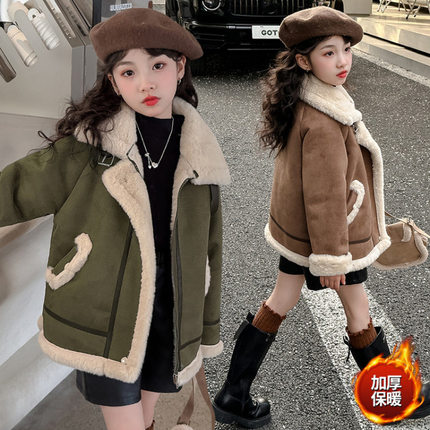女童皮毛一体外套秋冬洋气大童加绒上衣加厚保暖冬季2025潮款大衣