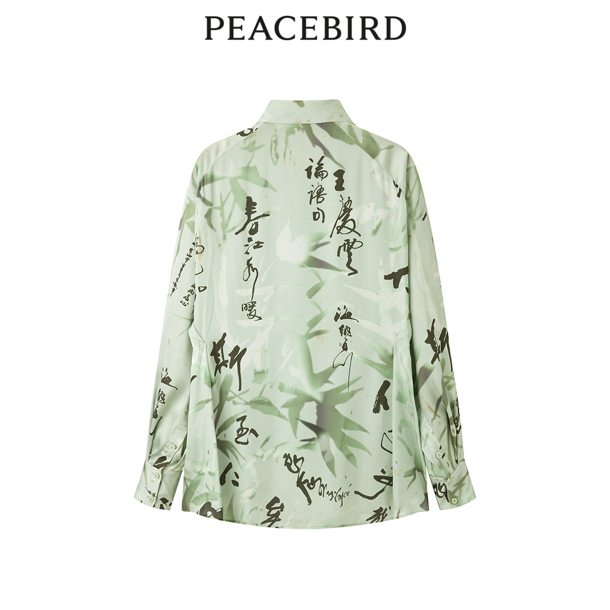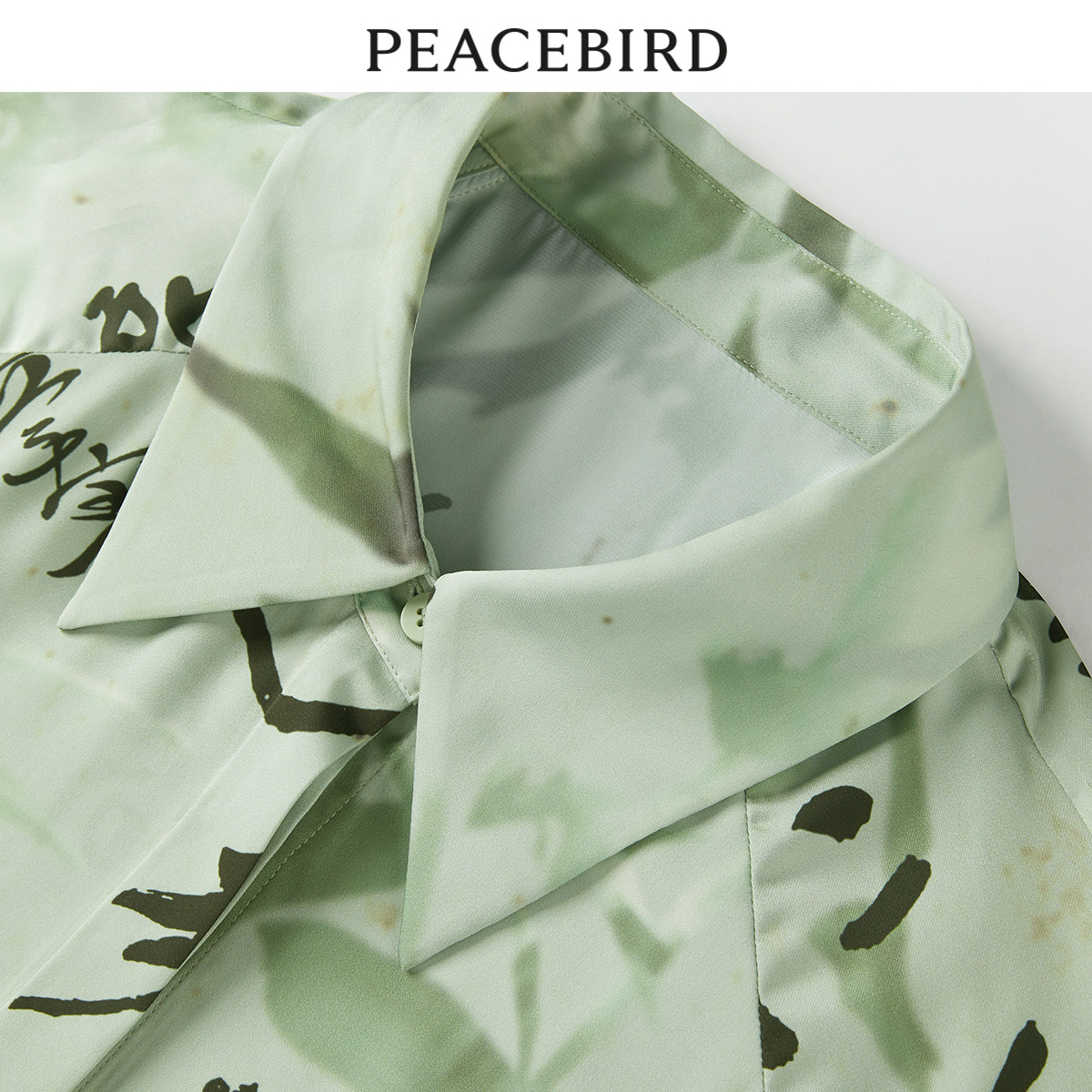 太平鸟女装夏季运动国风时尚休闲宽松满印衬衫A3CAD2110