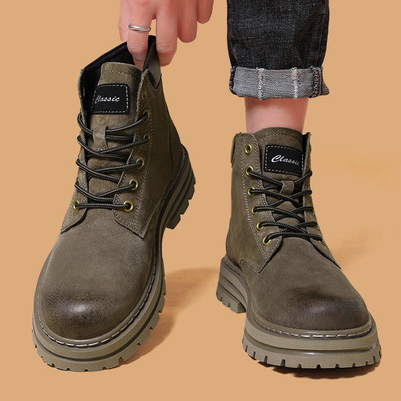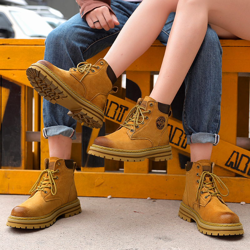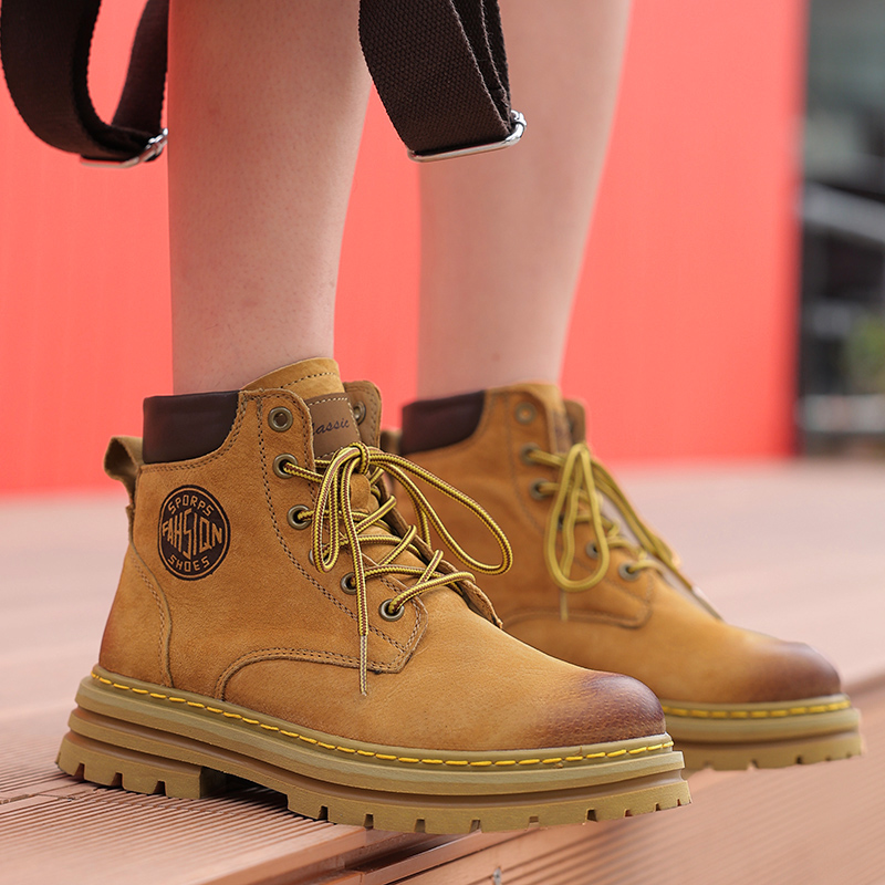 内增高男鞋厚底马丁靴高帮户外真皮小码36男女款休闲大黄靴踢不烂
