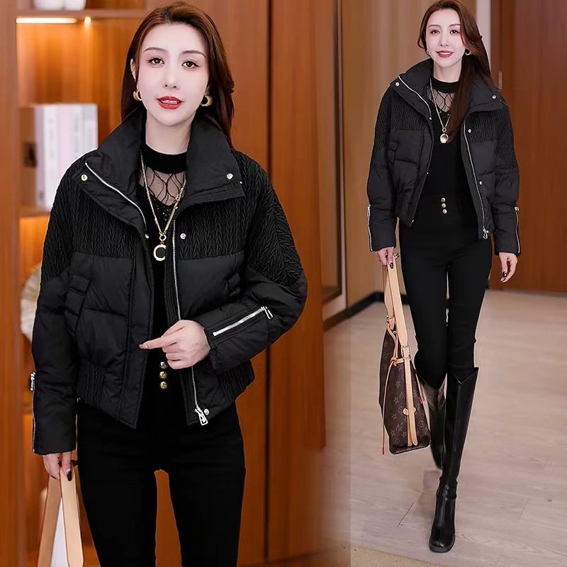 时尚短款羽绒棉服女2025冬季新款洋气加厚保暖立领小个子棉袄外套