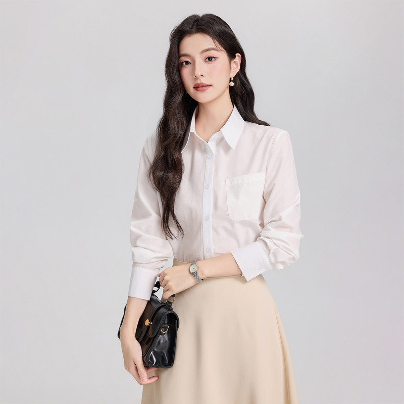 气质法式尖领高级感长袖白衬衫女通勤纯色叠穿衬衣减龄休闲莫代尔