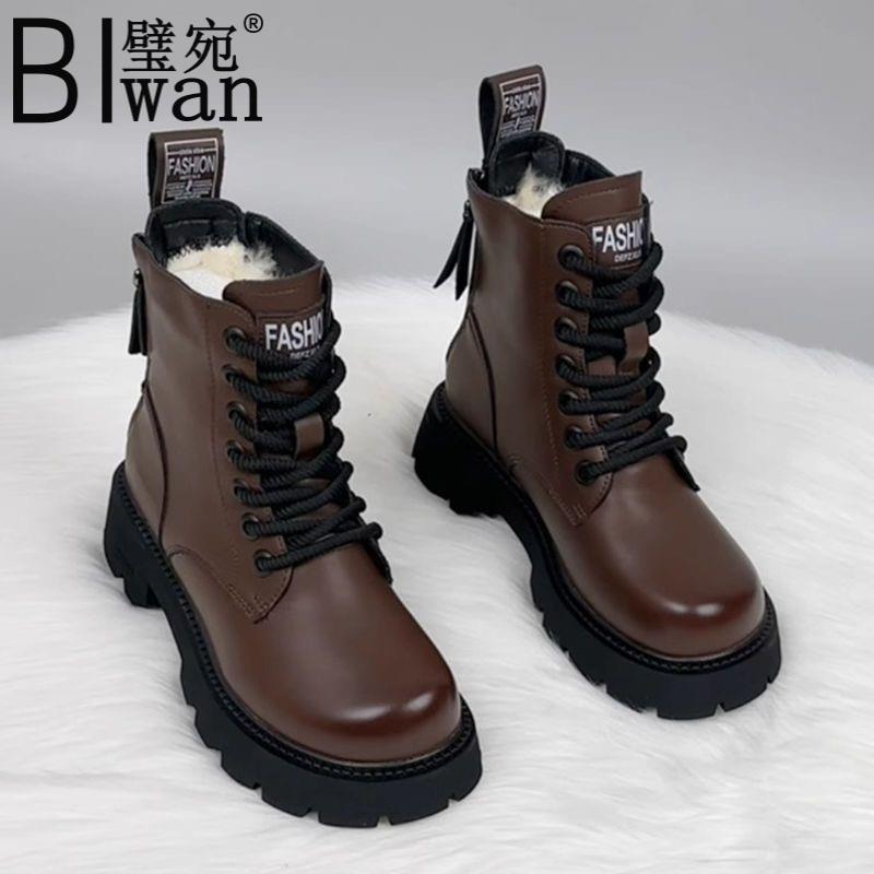 秋冬新款羊毛马丁靴加厚加绒女鞋