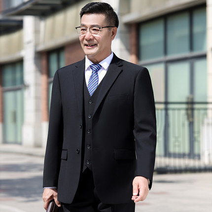 婚礼结婚宴喜爸爸西服套装三件套中年男士春秋西装外套商务正装